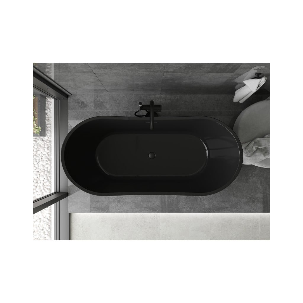 Mexen Montana, voľne stojaca vaňa 170 x 80 cm, čierna, čierny prepad, 52011708070-70
