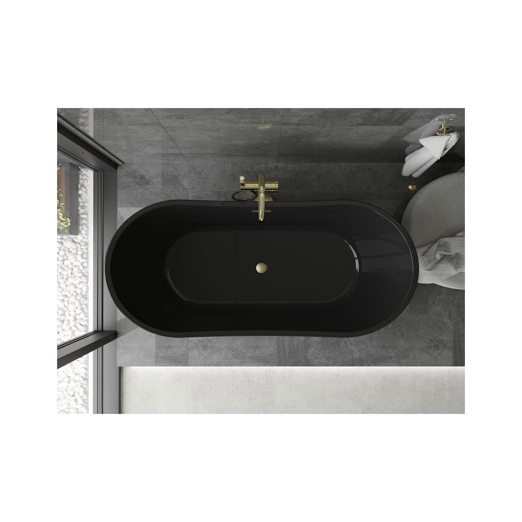 Mexen Montana, voľne stojaca vaňa 170 x 80 cm, čierna, zlatý matný prepad, 52011708070-55