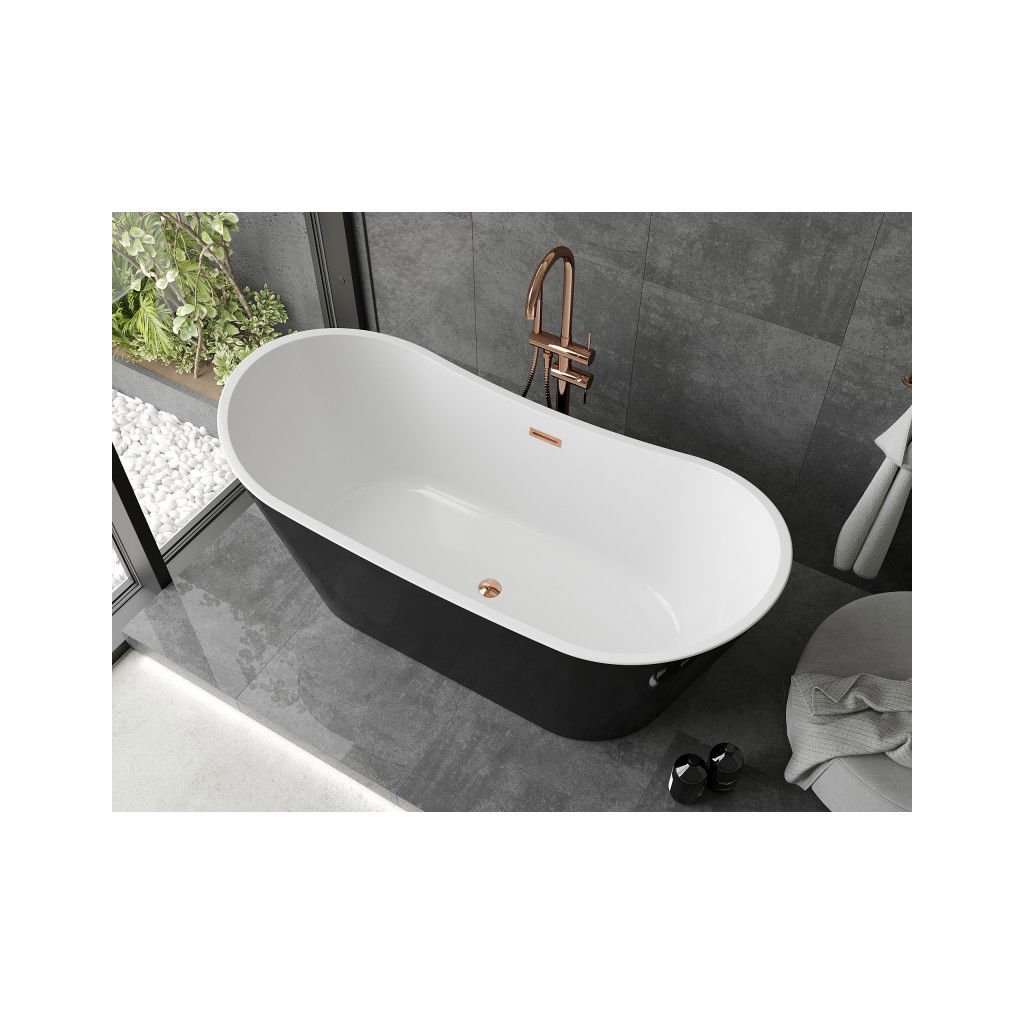 Mexen Montana, voľne stojaca vaňa 180 x 80 cm, biela-čierna, ružové zlato prepad, 52011808075-60