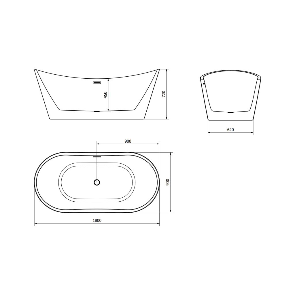 Mexen Montana, voľne stojaca vaňa 180 x 90 cm, biela, biely prepad, 52011809000-20