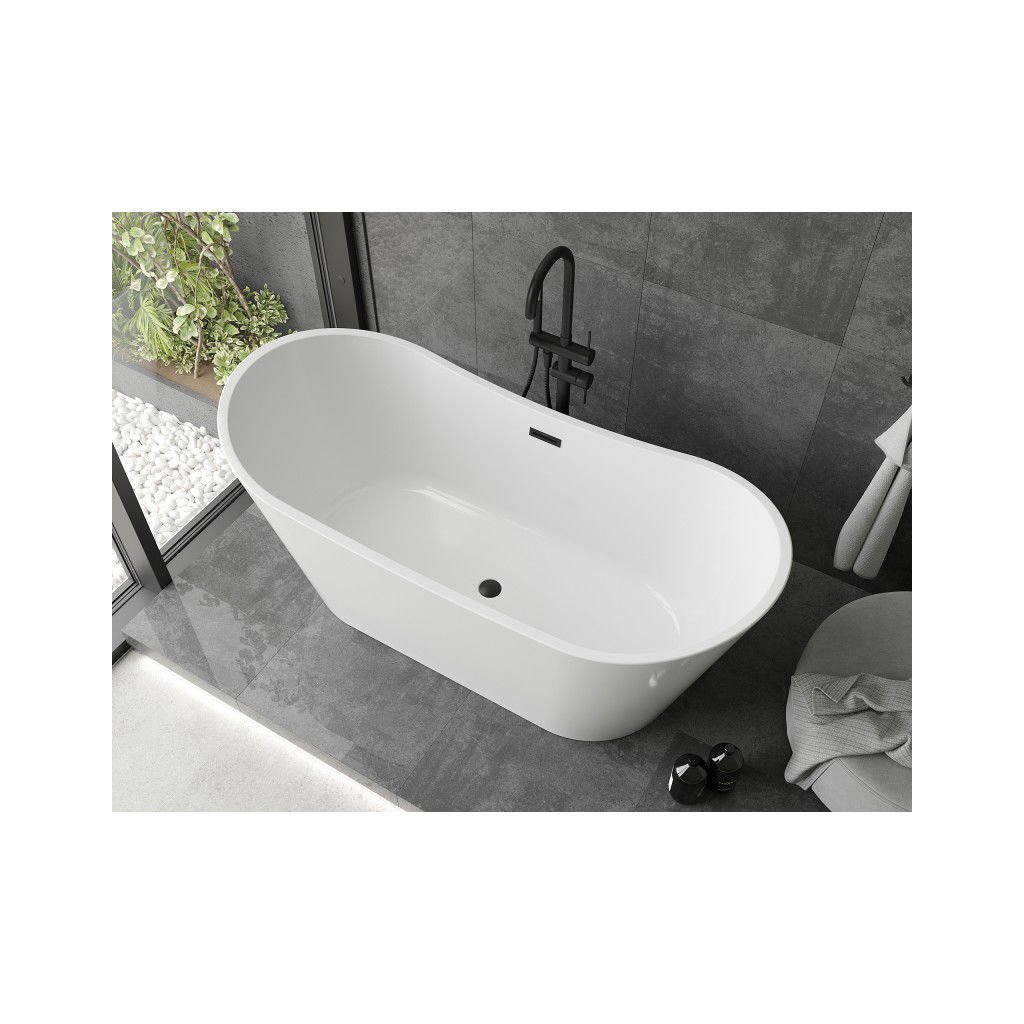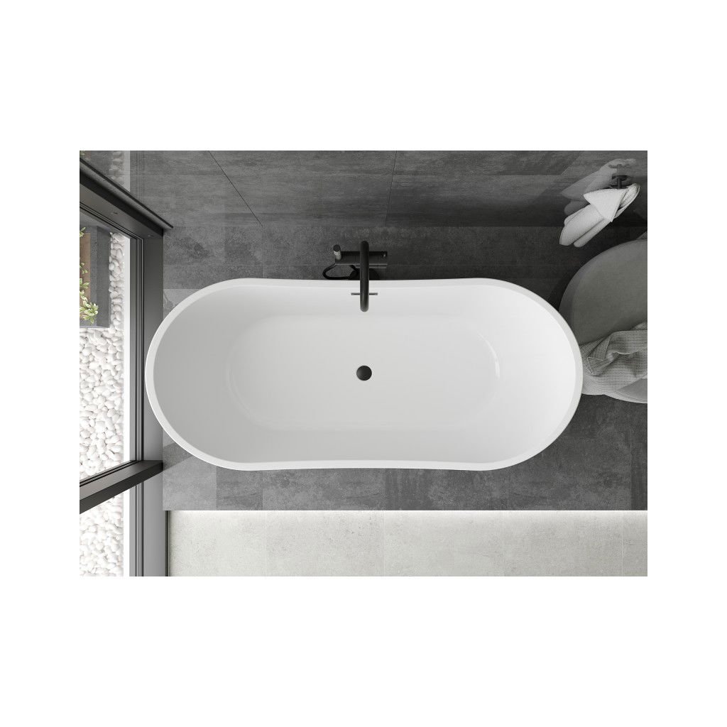 Mexen Montana, voľne stojaca vaňa 180 x 90 cm, biela, čierny matný prepad, 52011809000-70