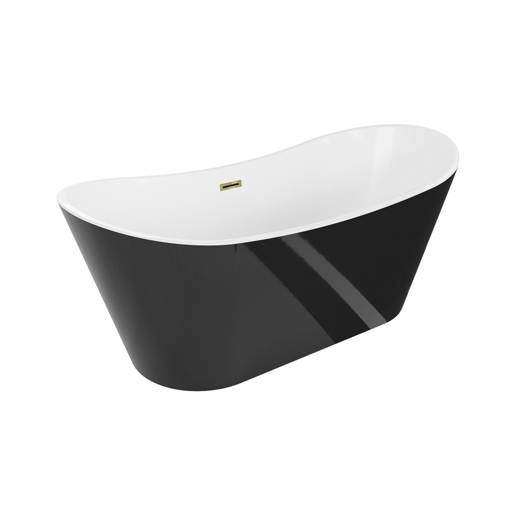 Mexen Montana, voľne stojaca vaňa 180 x 90 cm, biela-čierna, zlatý lesklý prepad, 52011809075-50