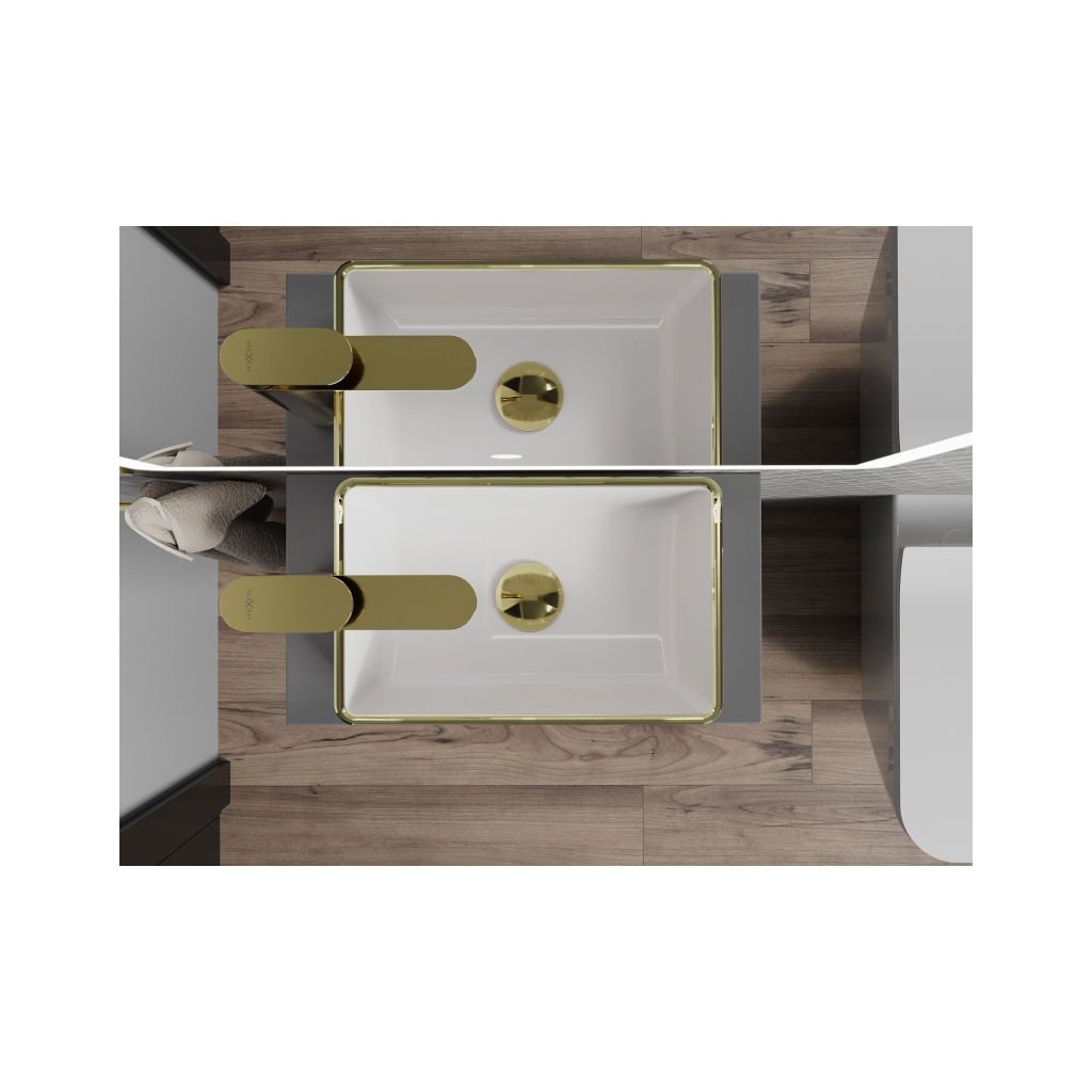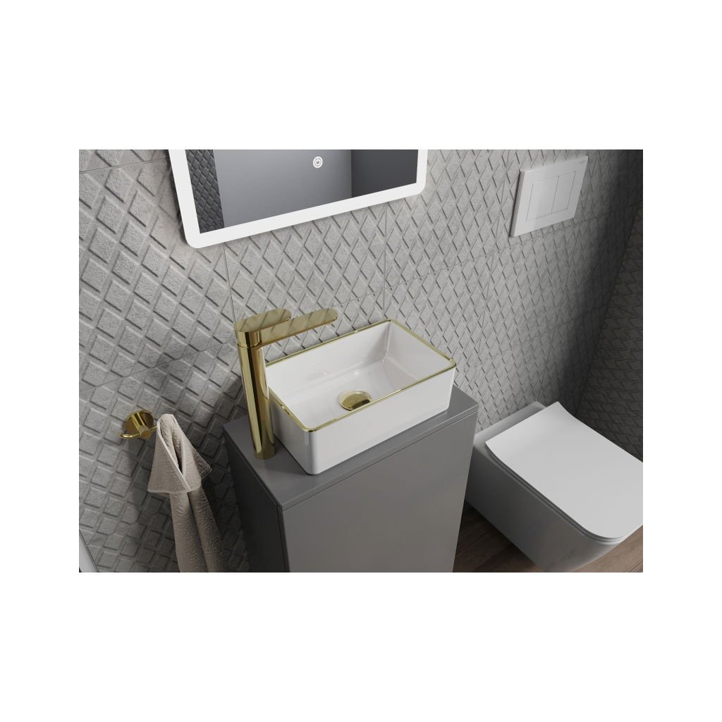 Mexen Nadia, umývadlo na dosku 365x235x120 mm, biela-zlatý okraj, 21613605