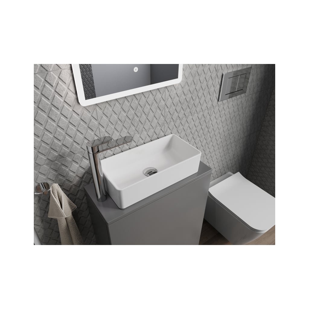Umývadlo na dosku Mexen Nadia s rozmermi 46x32 cm je kúpeľňová keramika strednej veľkosti, ktorá bola navrhnutá s ohľadom na funkčnosť a dekoratívny charakter. Keramická miska oslňuje svojou žiarou, ktorá vďaka nedostatku otvoru pre batériu môže zdôrazniť očarujúcu dizajnérsku batériu. Luxusný moderný charakter každej módnej kúpeľne doplní obdĺžnikové umývadlo Nadia. Dokonale ladí s moderným štýlom. Funguje skvele v malých aj veľkých interiéroch kúpeľní.
