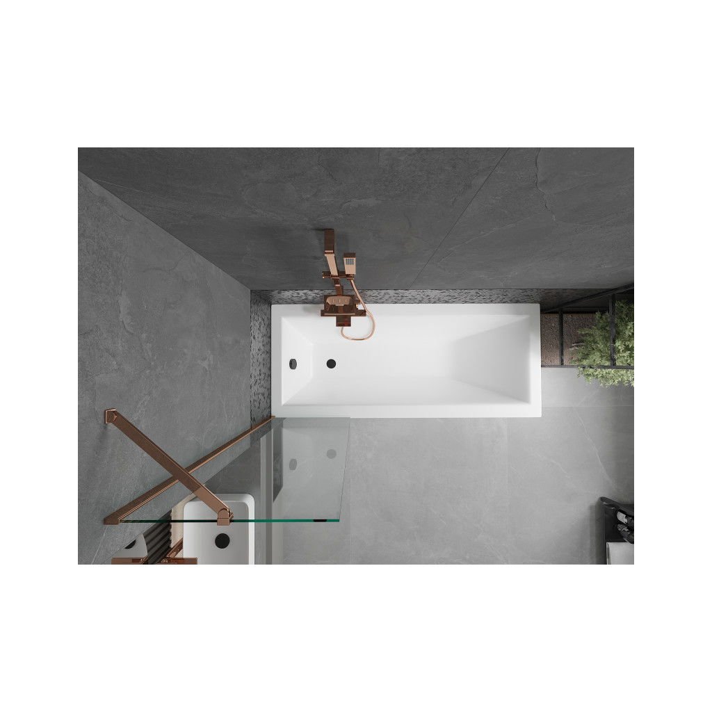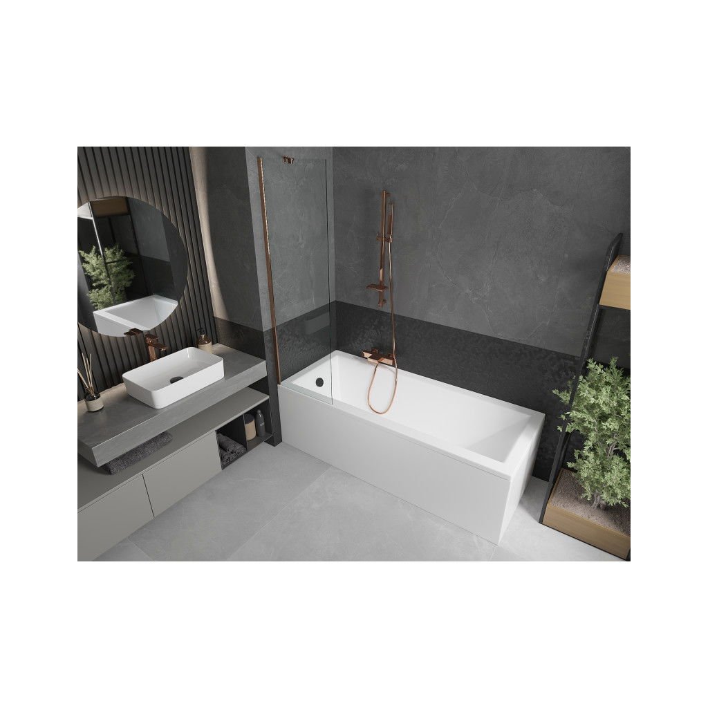 Mexen Next, vaňová zástena 1-krídlová 50 x 150 cm, fixné krídlo, 6 mm číre sklo, ružové zlato profil, 895-050-000-00-00-60
