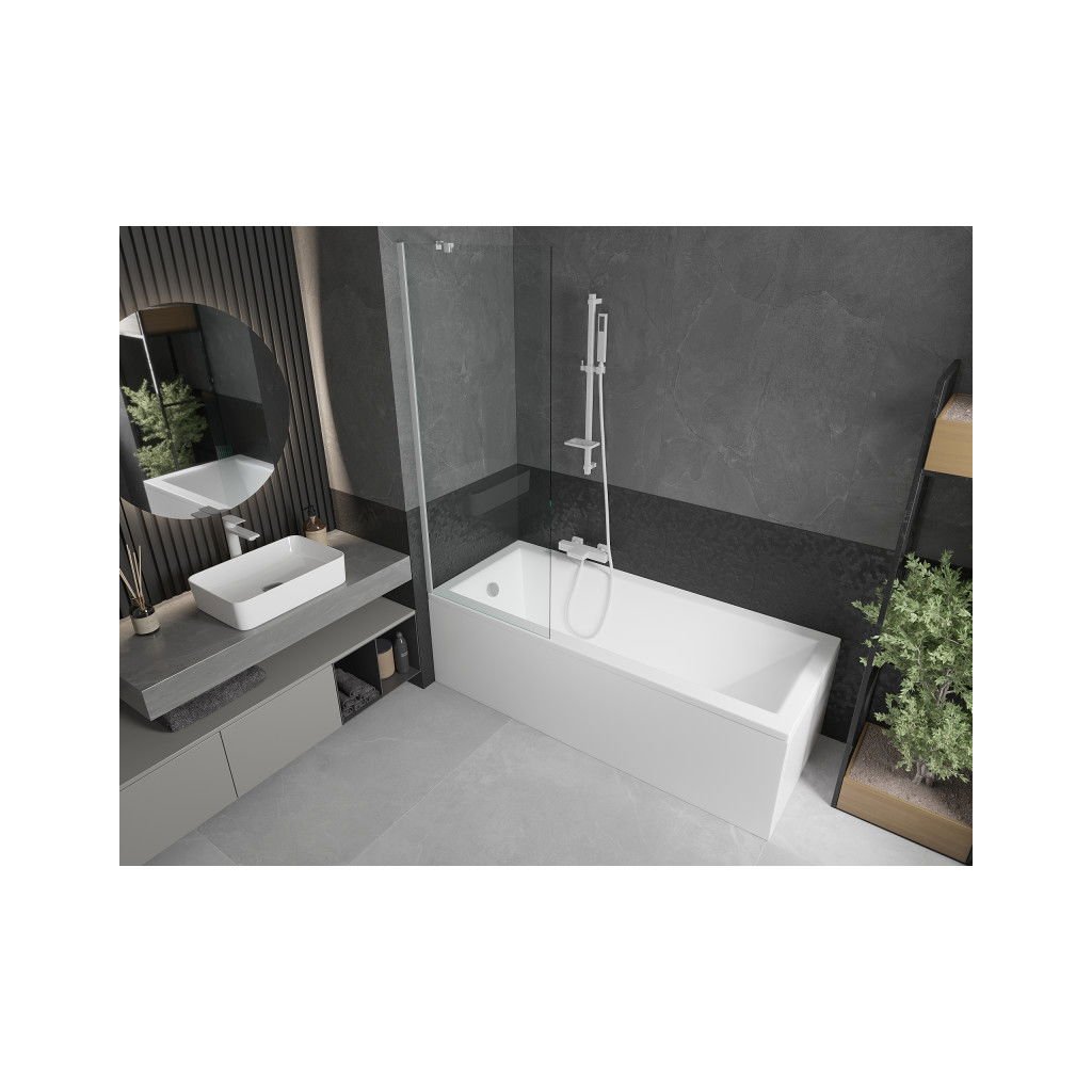 Mexen Next, vaňová zástena 1-krídlová 70 x 150 cm, fixné krídlo, 6 mm číre sklo, biely profil, 895-070-000-00-00-20