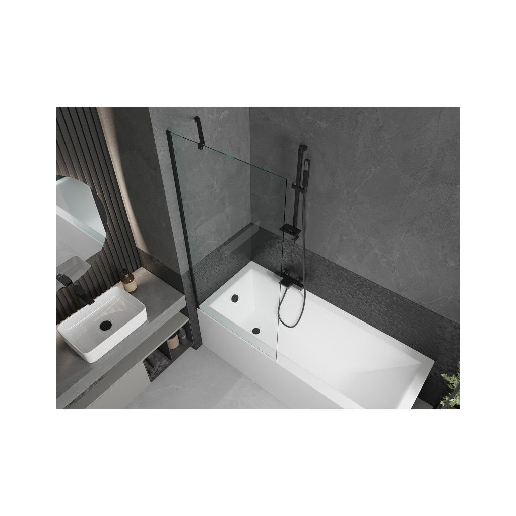 Mexen Next, vaňová zástena 1-krídlová 80 x 150 cm, fixné krídlo, 6 mm číre sklo, čierny profil, 895-080-000-00-00-70