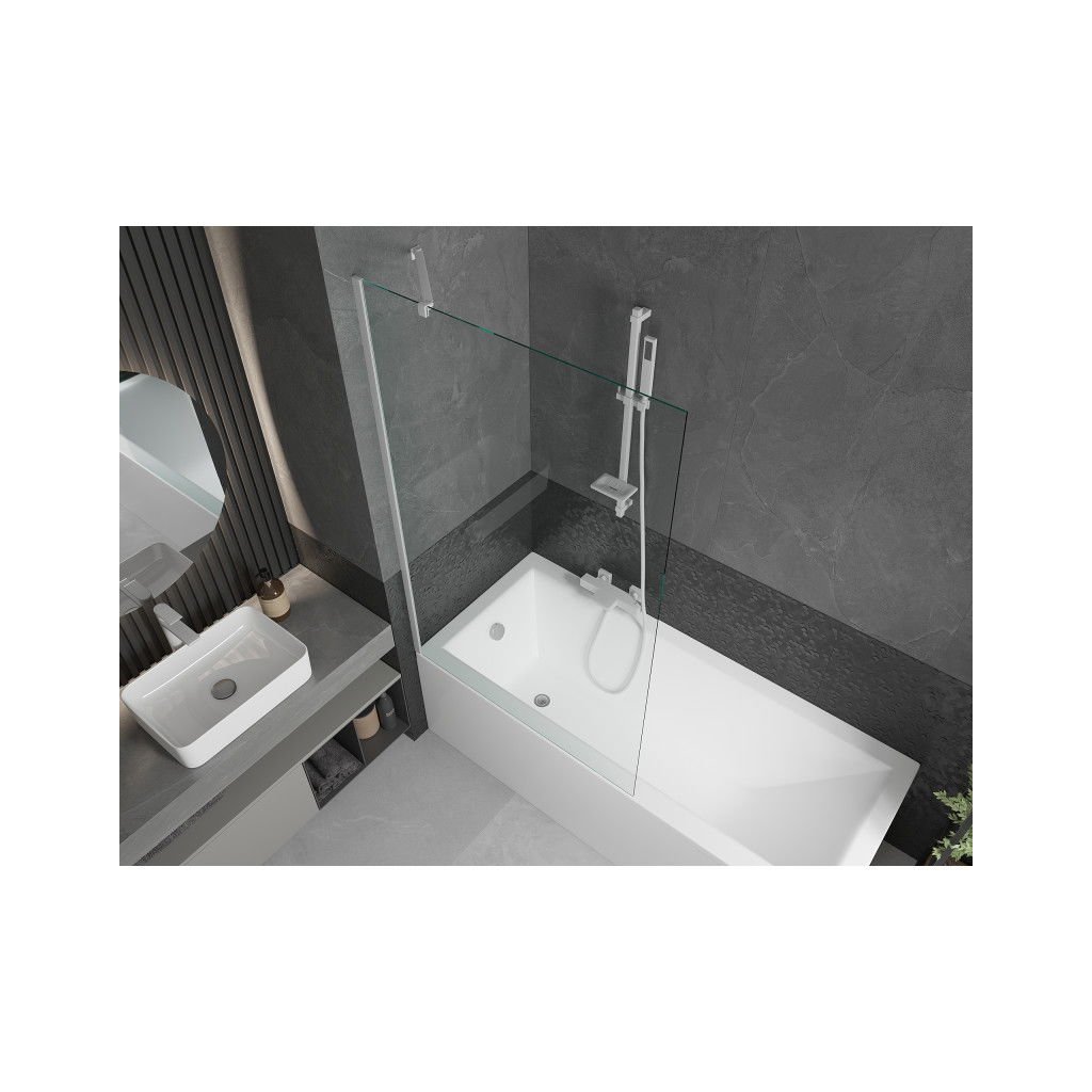 Mexen Next, vaňová zástena 1-krídlová 100 x 150 cm, fixné krídlo, 6 mm číre sklo, biely profil, 895-100-000-00-00-20