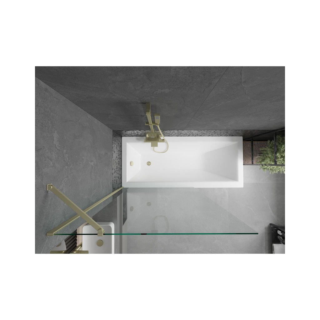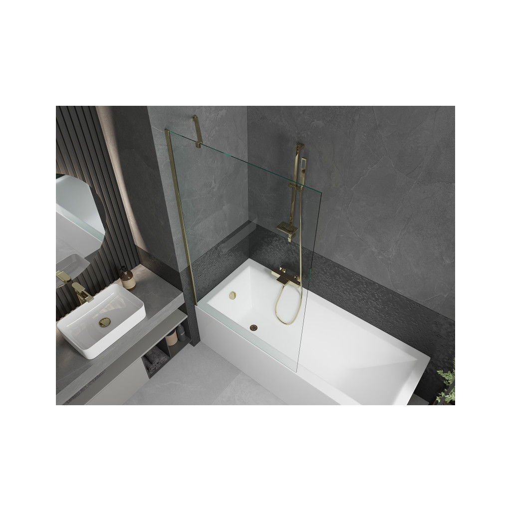Mexen Next, vaňová zástena 1-krídlová 100 x 150 cm, fixné krídlo, 6 mm číre sklo, zlatý profil, 895-100-000-00-00-50