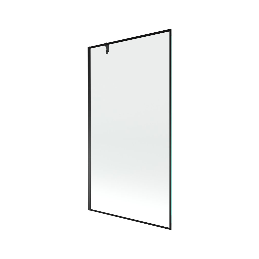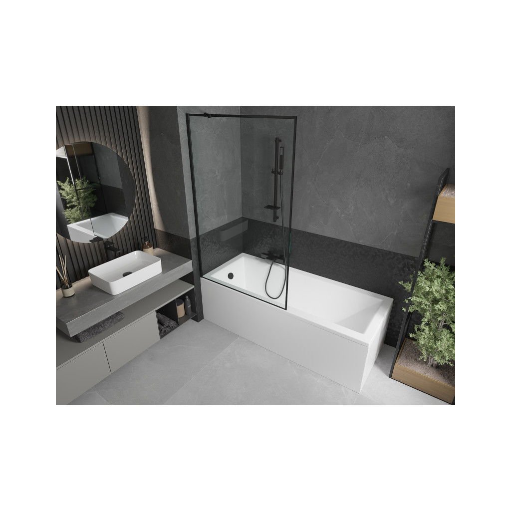 Mexen Next, vaňová zástena 1-krídlová 100 x 150 cm, fixné krídlo, 6 mm číre sklo s čiernym vzorom, čierny profil, 895-100-000-00-70-70