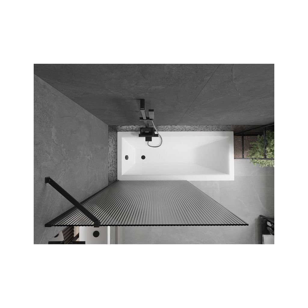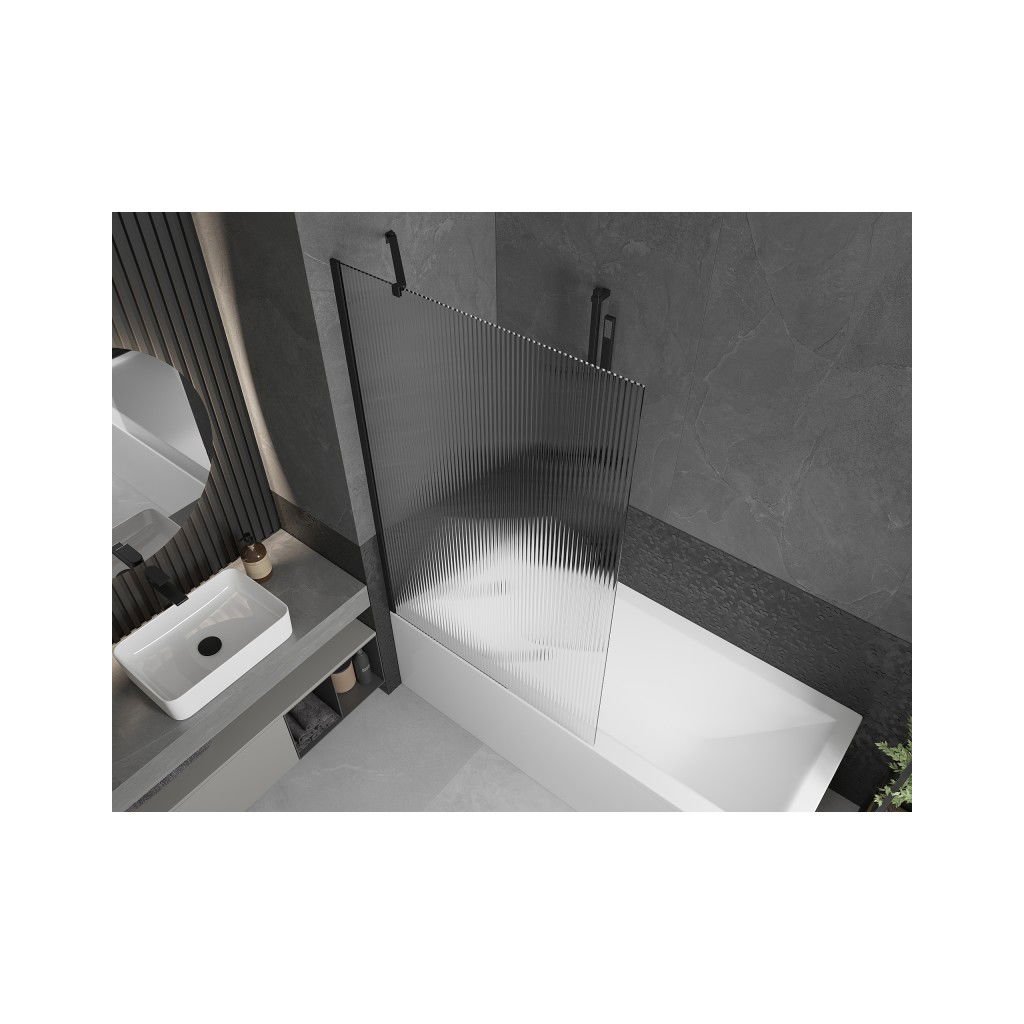 Mexen Next, vaňová zástena 1-krídlová 100 x 150 cm, fixné krídlo, 6 mm sklo s pruhmi, čierny profil, 895-100-000-00-09-70