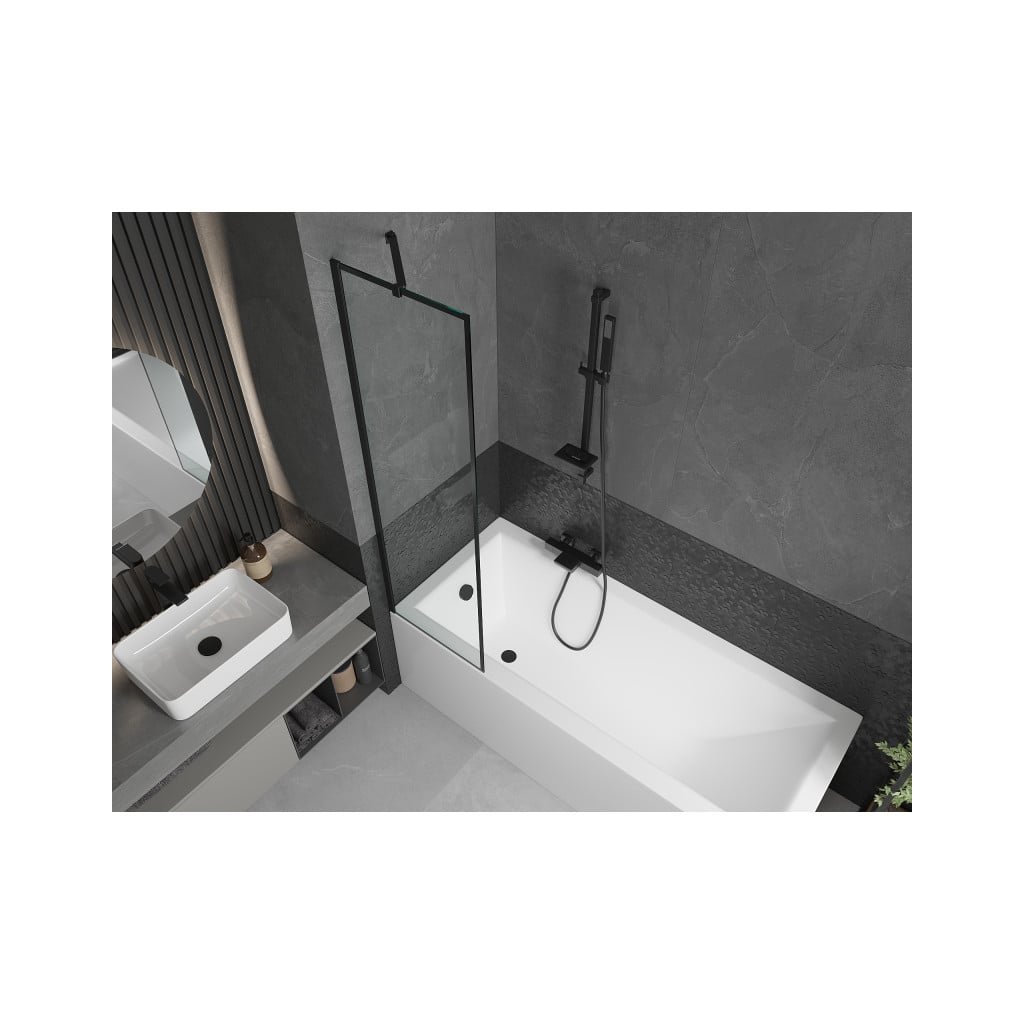 Mexen Next, vaňová zástena 1-krídlová 50 x 150 cm, fixné krídlo, 6 mm číre sklo s čiernym vzorom, čierny profil, 895-050-000-00-70-70