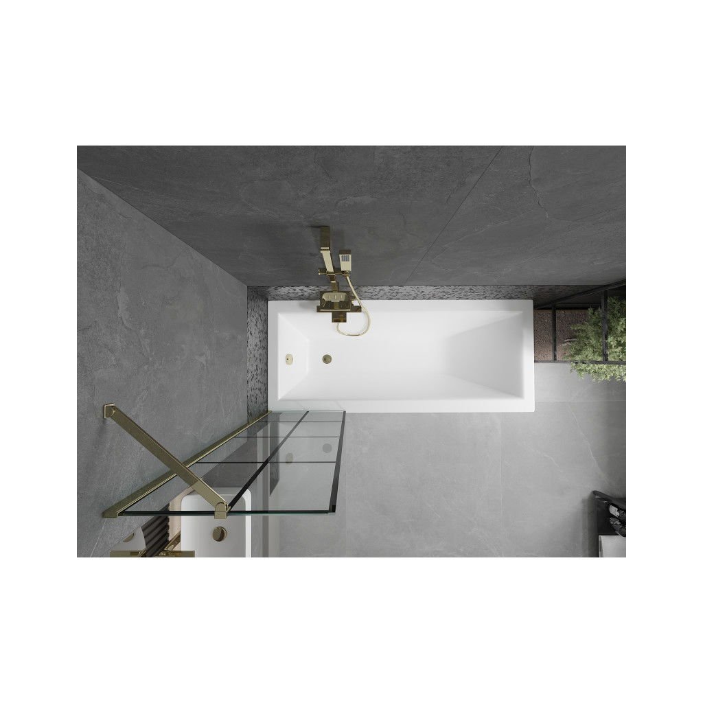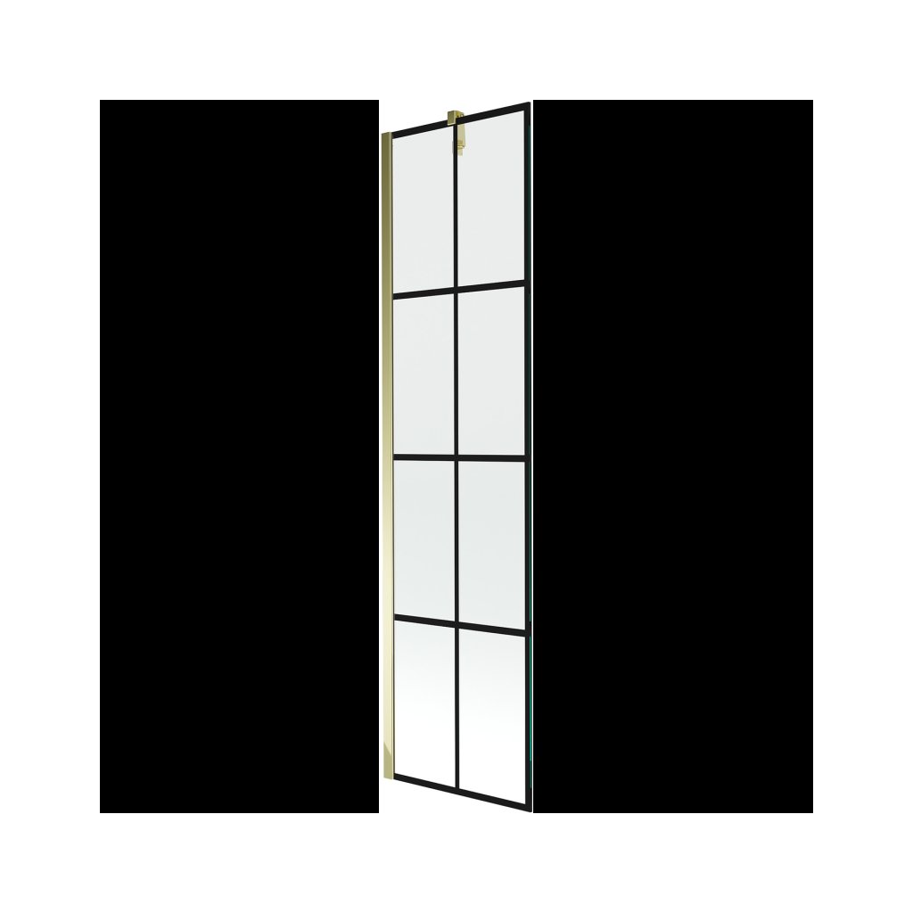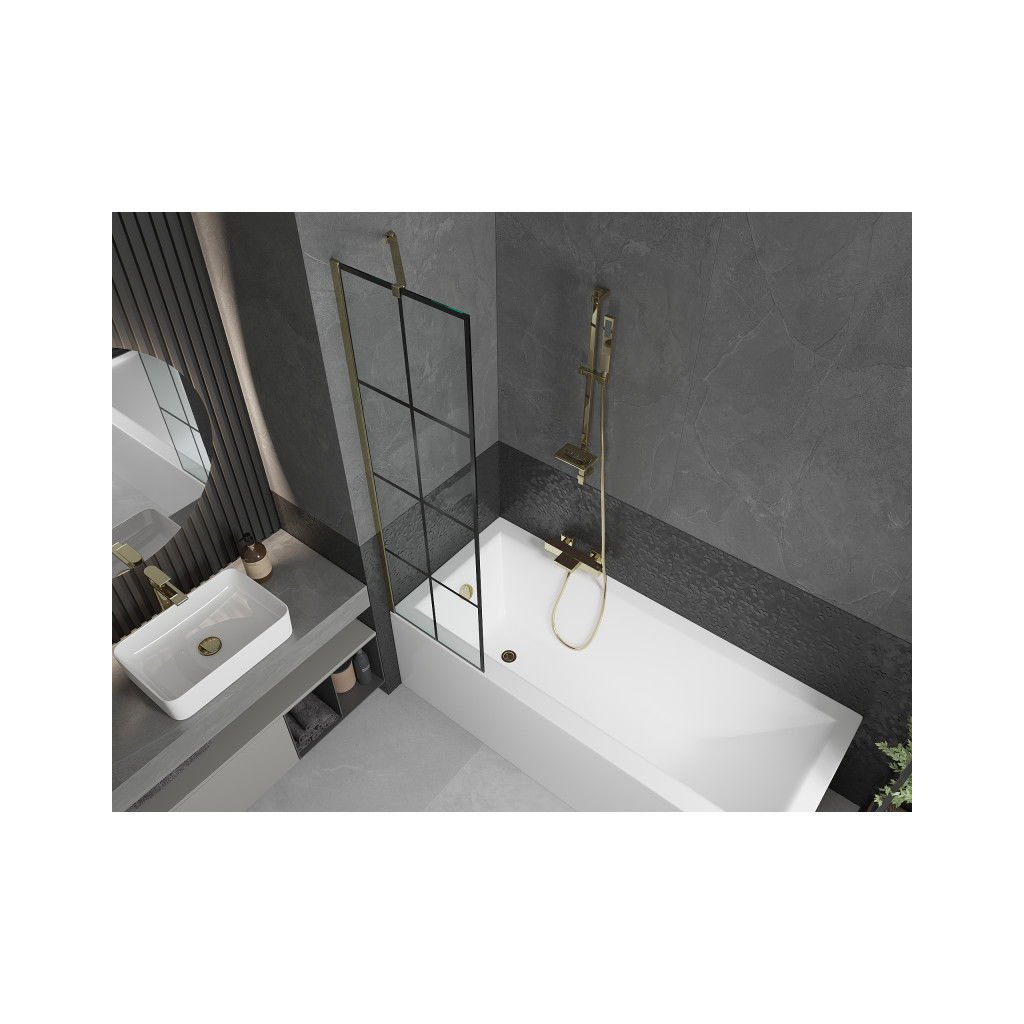 Mexen Next, vaňová zástena 1-krídlová 50 x 150 cm, fixné krídlo, 6 mm číre sklo s čiernym vzorom, zlatý profil, 895-050-000-00-77-50