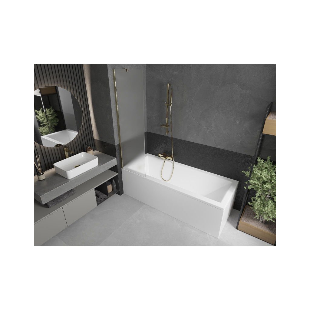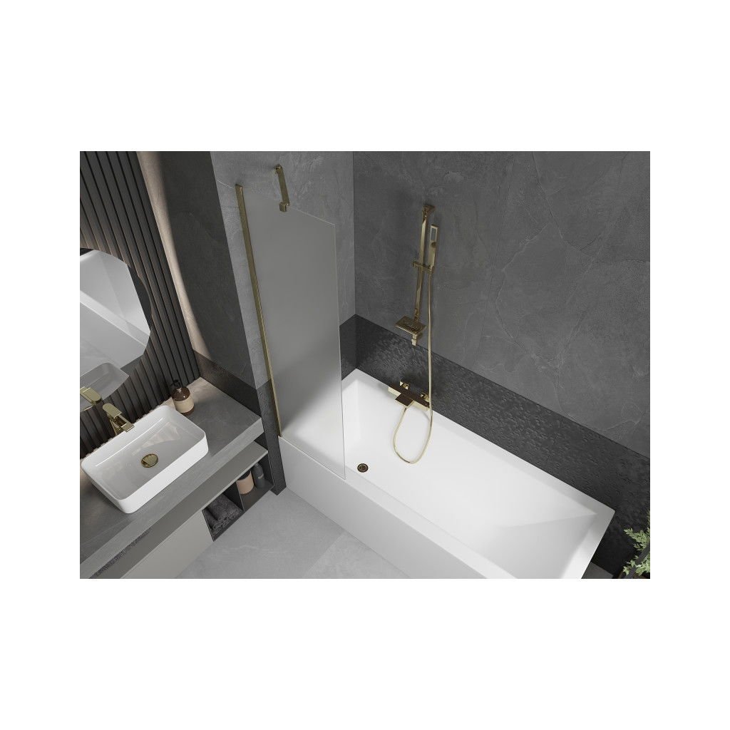 Mexen Next, vaňová zástena 1-krídlová 50 x 150 cm, fixné krídlo, 6 mm námraza sklo, zlatý profil, 895-050-000-00-30-50