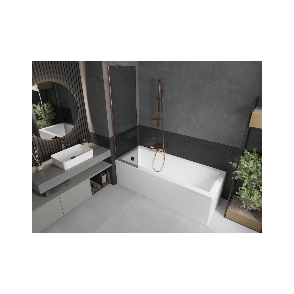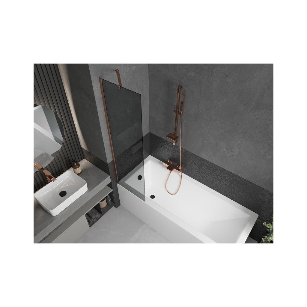Mexen Next, vaňová zástena 1-krídlová 50 x 150 cm, fixné krídlo, 6 mm šedé sklo, ružové zlato profil, 895-050-000-00-40-60