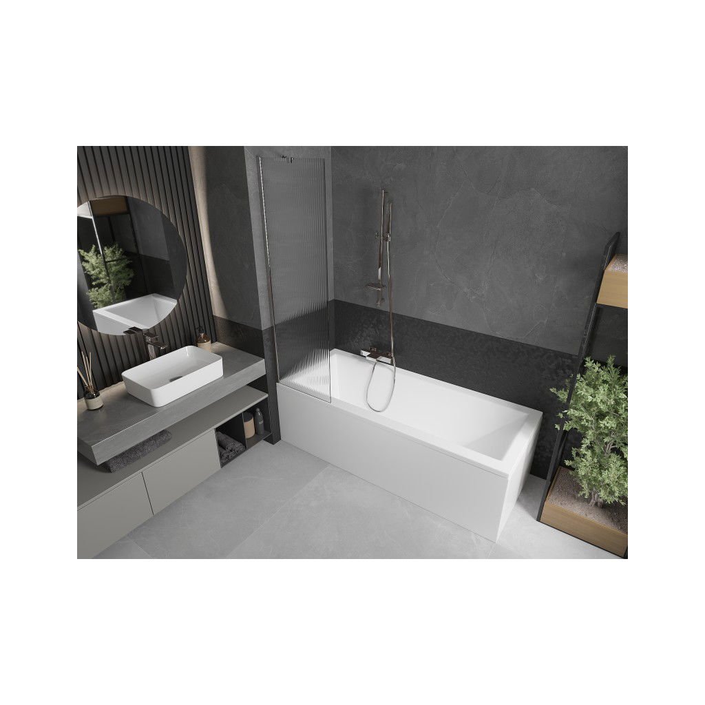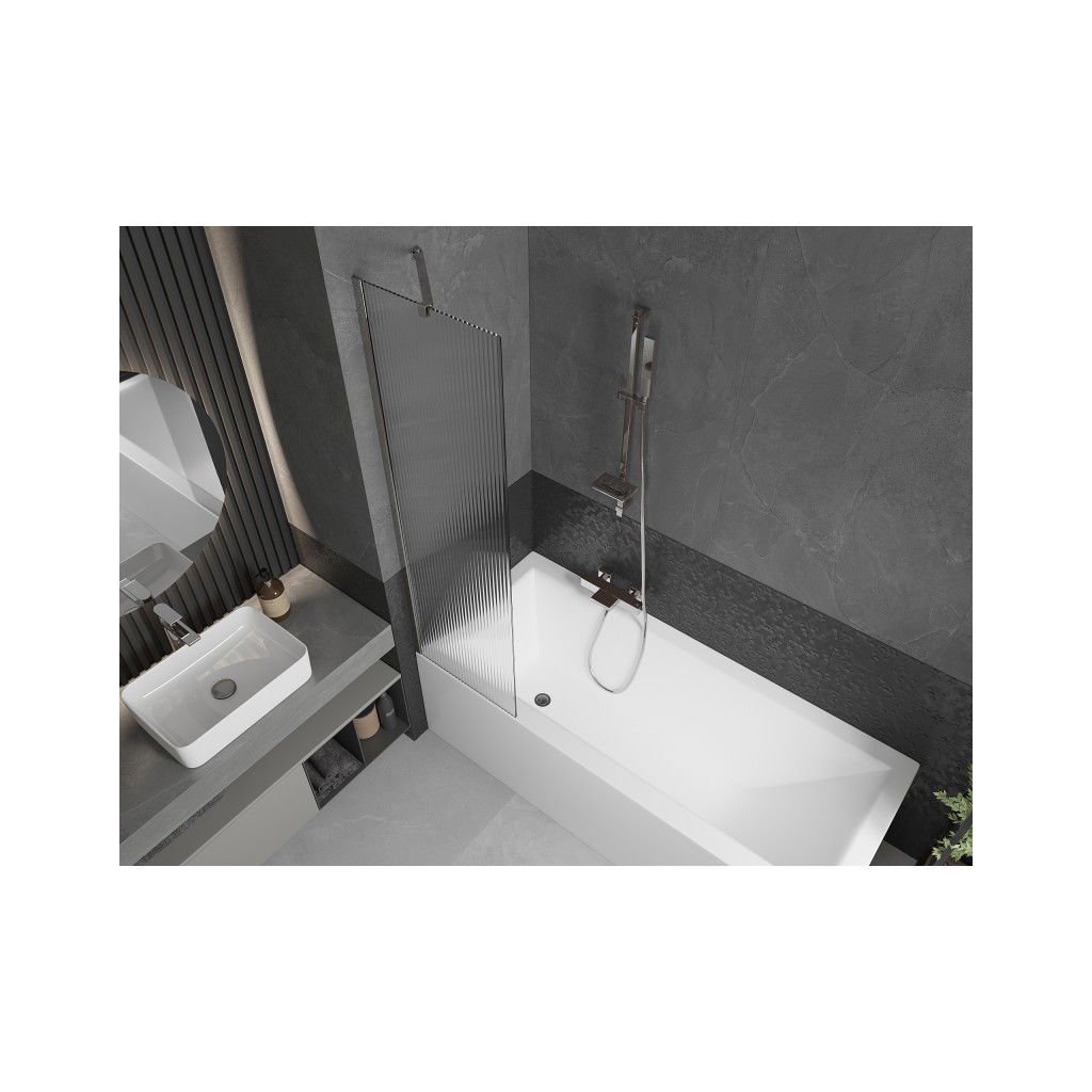 Mexen Next, vaňová zástena 1-krídlová 50 x 150 cm, fixné krídlo, 6 mm sklo s pruhmi, chrómový profil, 895-050-000-00-09-01