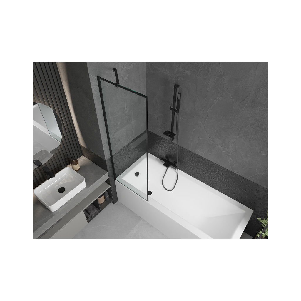 Mexen Next, vaňová zástena 1-krídlová 60 x 150 cm, fixné krídlo, 6 mm číre sklo s čiernym vzorom, čierny profil, 895-060-000-00-70-70