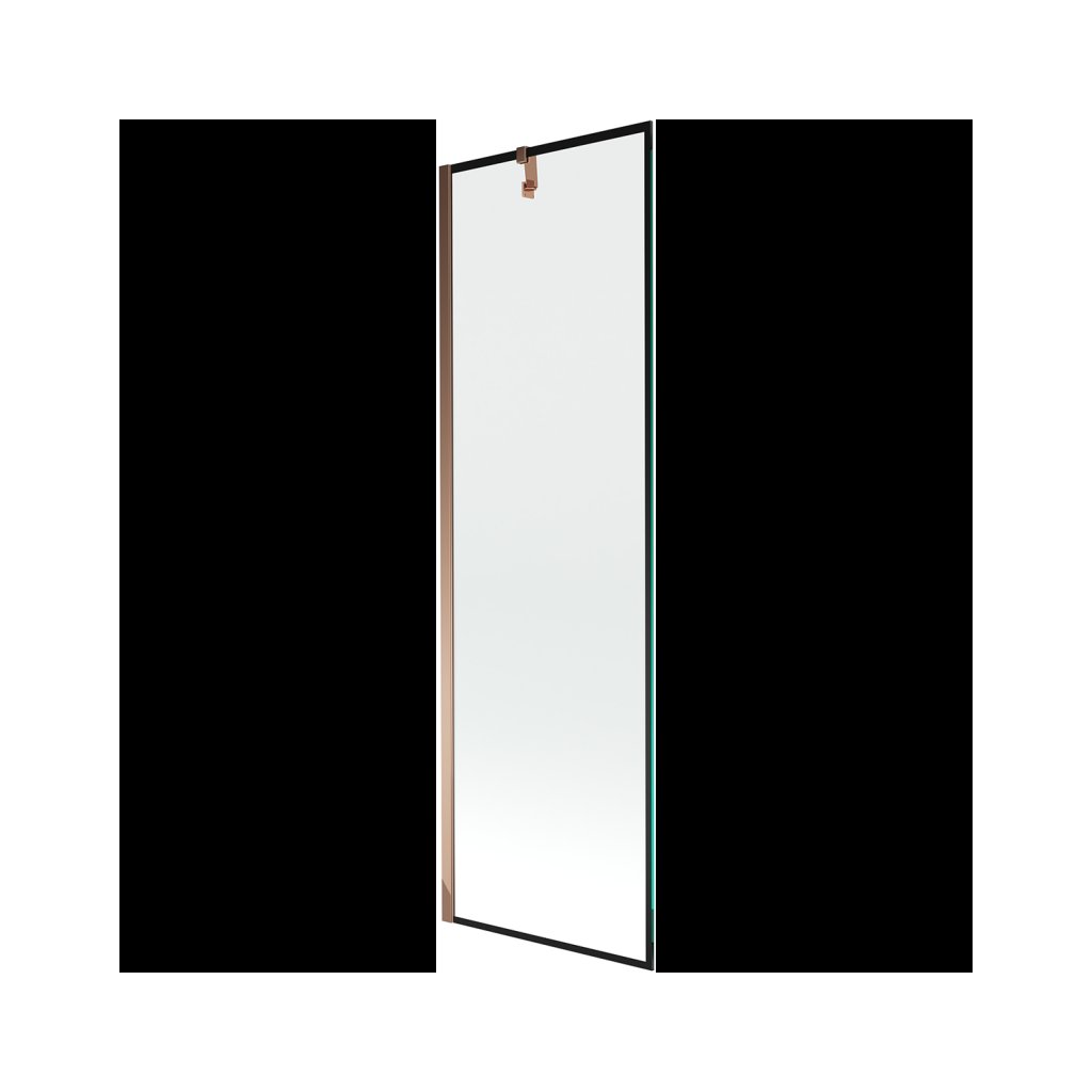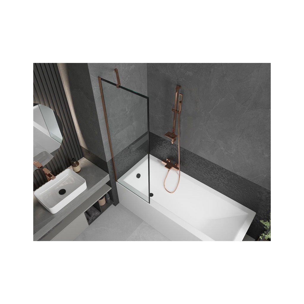Mexen Next, vaňová zástena 1-krídlová 60 x 150 cm, fixné krídlo, 6 mm číre sklo s čiernym vzorom, ružové zlato profil, 895-060-000-00-70-60