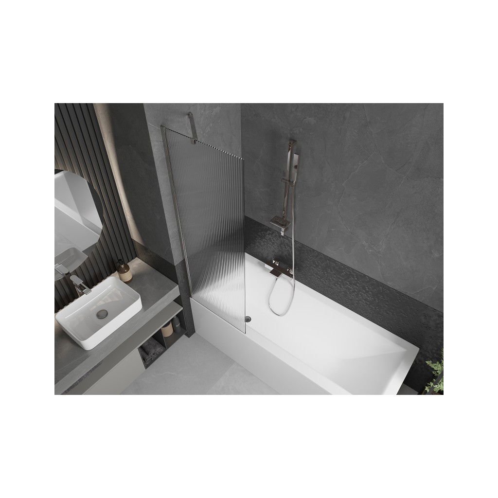 Mexen Next, vaňová zástena 1-krídlová 60 x 150 cm, fixné krídlo, 6 mm sklo s pruhmi, chrómový profil, 895-060-000-00-09-01