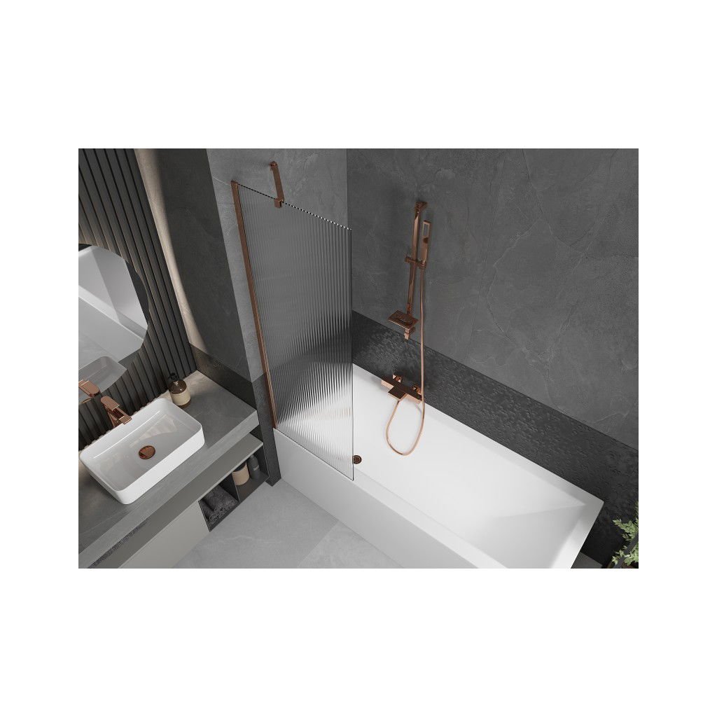 Mexen Next, vaňová zástena 1-krídlová 60 x 150 cm, fixné krídlo, 6 mm sklo s pruhmi, ružové zlato profil, 895-060-000-00-09-60