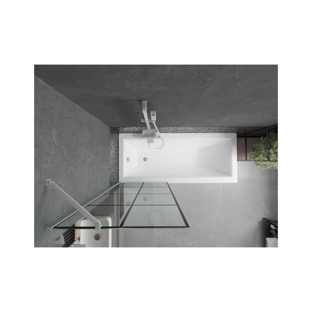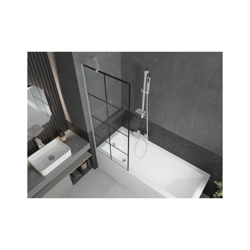 Mexen Next, vaňová zástena 1-krídlová 70 x 150 cm, fixné krídlo, 6 mm číre sklo s čiernym vzorom, biely profil, 895-070-000-00-77-20