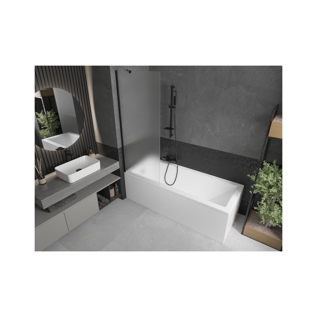 Mexen Next, vaňová zástena 1-krídlová 70 x 150 cm, fixné krídlo, 6 mm námraza sklo, čierny profil, 895-070-000-00-30-70