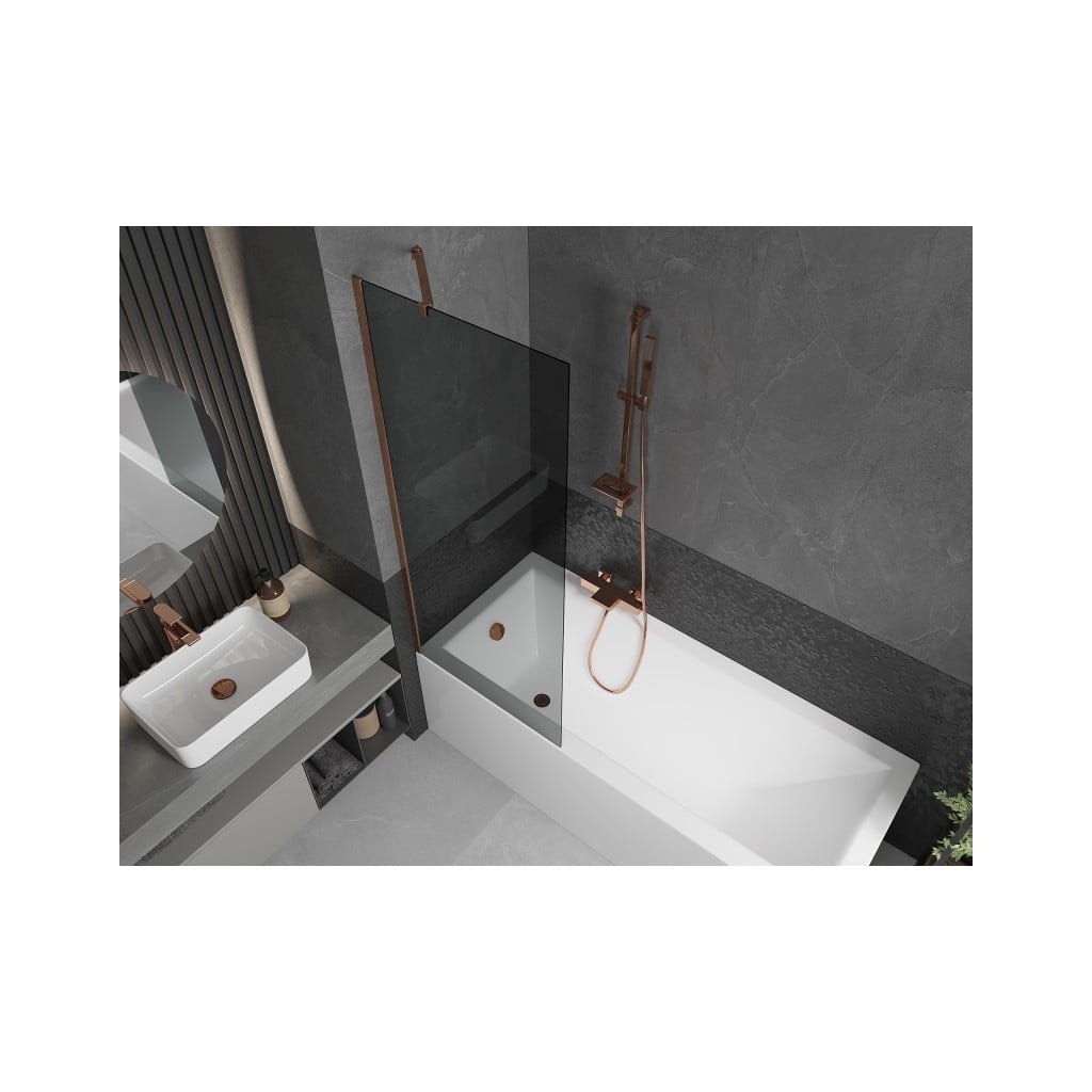 Mexen Next, vaňová zástena 1-krídlová 70 x 150 cm, fixné krídlo, 6 mm šedé sklo, ružové zlato profil, 895-070-000-00-40-60