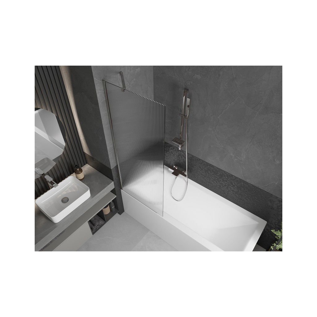 Mexen Next, vaňová zástena 1-krídlová 70 x 150 cm, fixné krídlo, 6 mm sklo s pruhmi, chrómový profil, 895-070-000-00-09-01