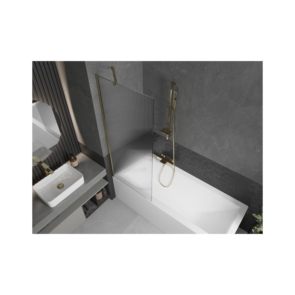Mexen Next, vaňová zástena 1-krídlová 70 x 150 cm, fixné krídlo, 6 mm sklo s pruhmi, zlatý lesklý profil, 895-070-000-00-09-50