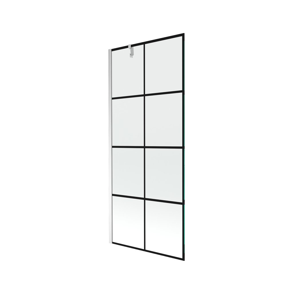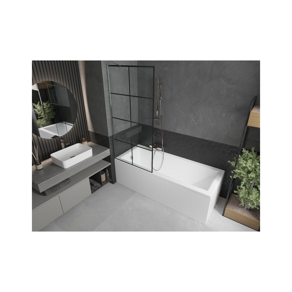 Mexen Next, vaňová zástena 1-krídlová 80 x 150 cm, fixné krídlo, 6 mm číre sklo s čiernym vzorom, chrómový profil, 895-080-000-00-77-01