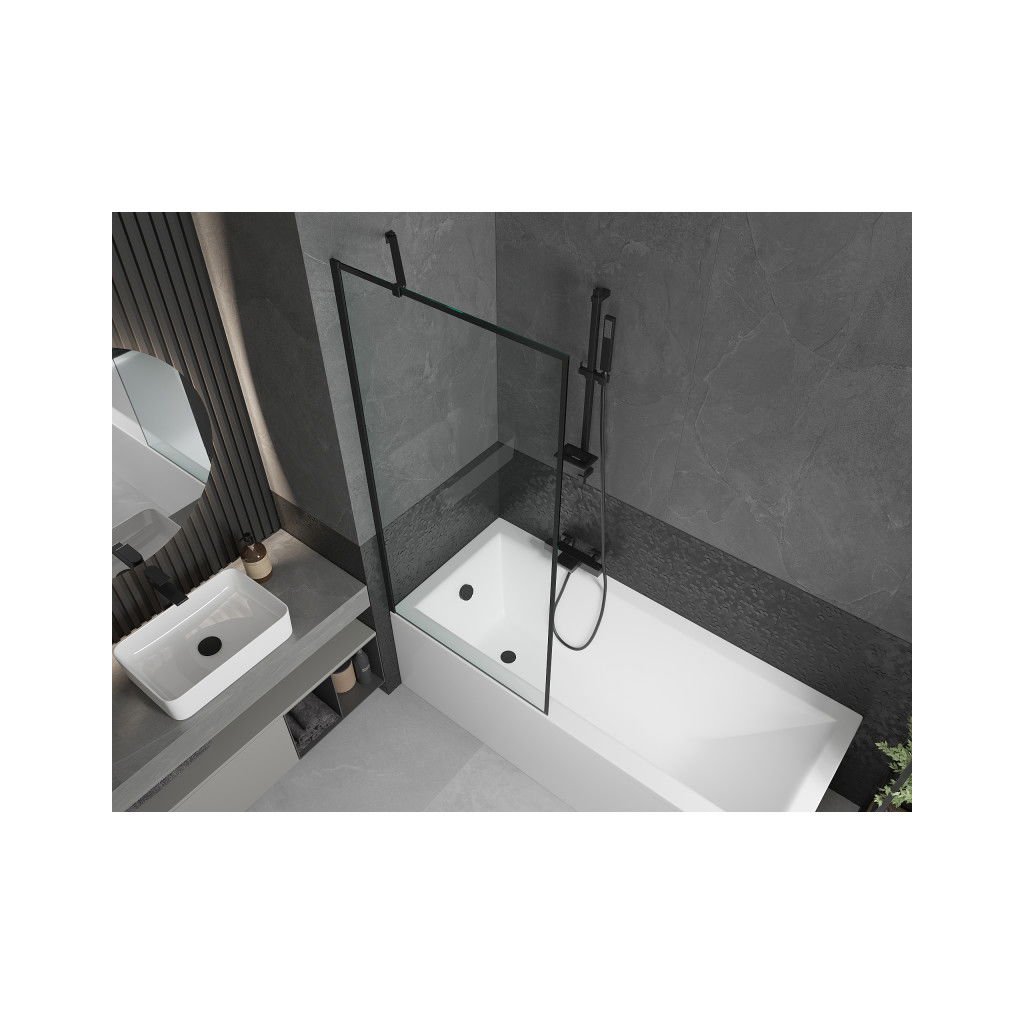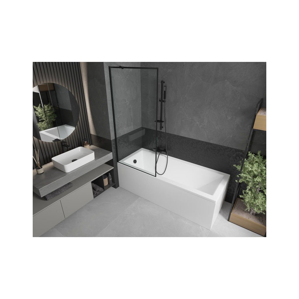 Mexen Next, vaňová zástena 1-krídlová 80 x 150 cm, fixné krídlo, 6 mm číre sklo s čiernym vzorom, čierny profil, 895-080-000-00-70-70