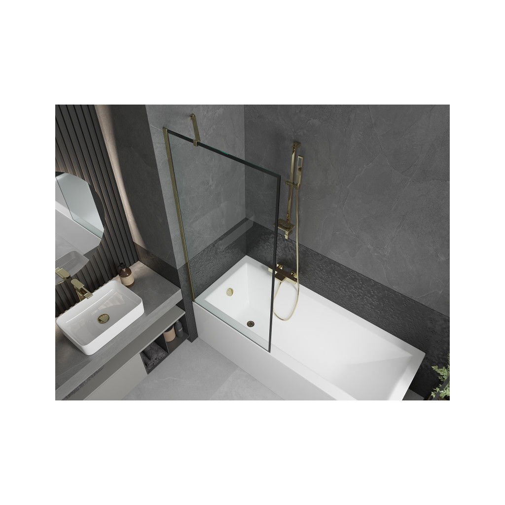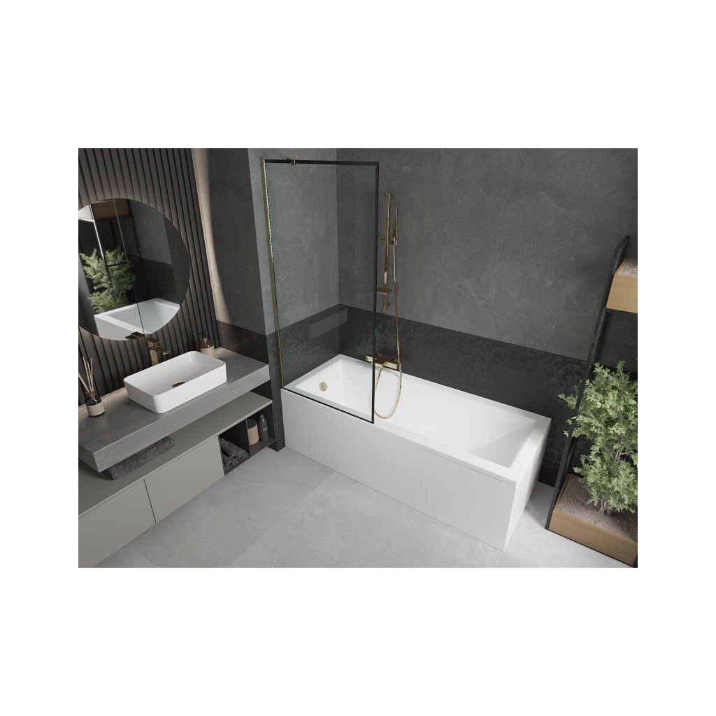 Mexen Next, vaňová zástena 1-krídlová 80 x 150 cm, fixné krídlo, 6 mm číre sklo s čiernym vzorom, zlatý profil, 895-080-000-00-70-50