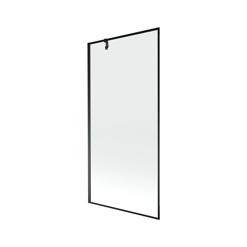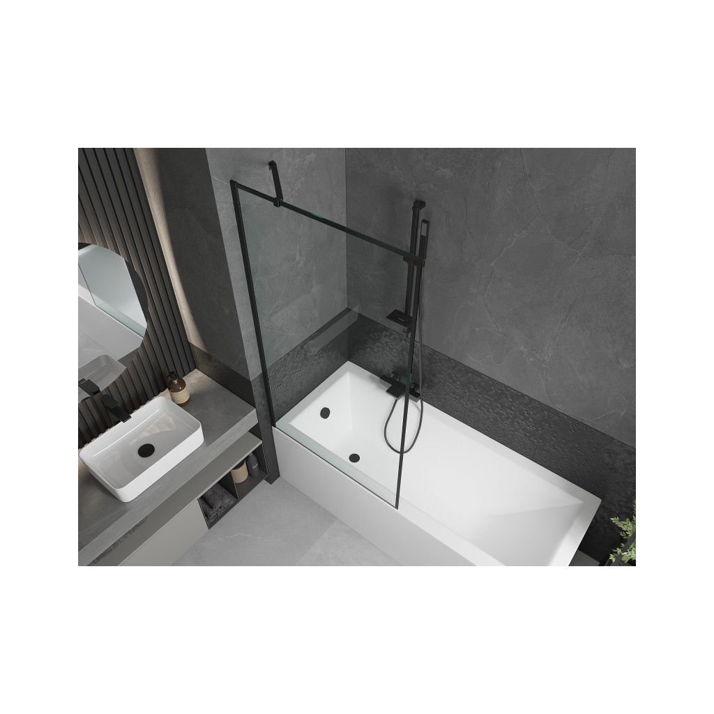 Mexen Next, vaňová zástena 1-krídlová 90 x 150 cm, fixné krídlo, 6 mm číre sklo s čiernym vzorom, čierny profil, 895-090-000-00-70-70