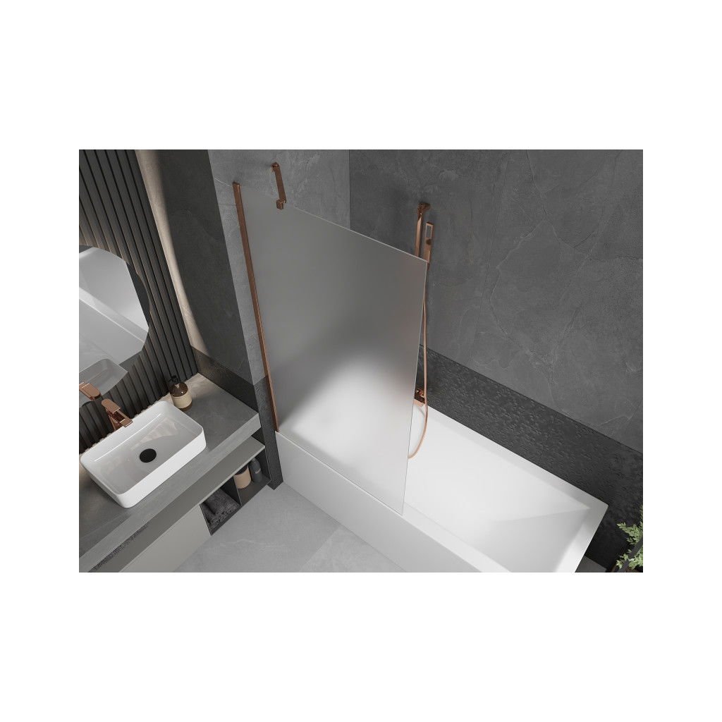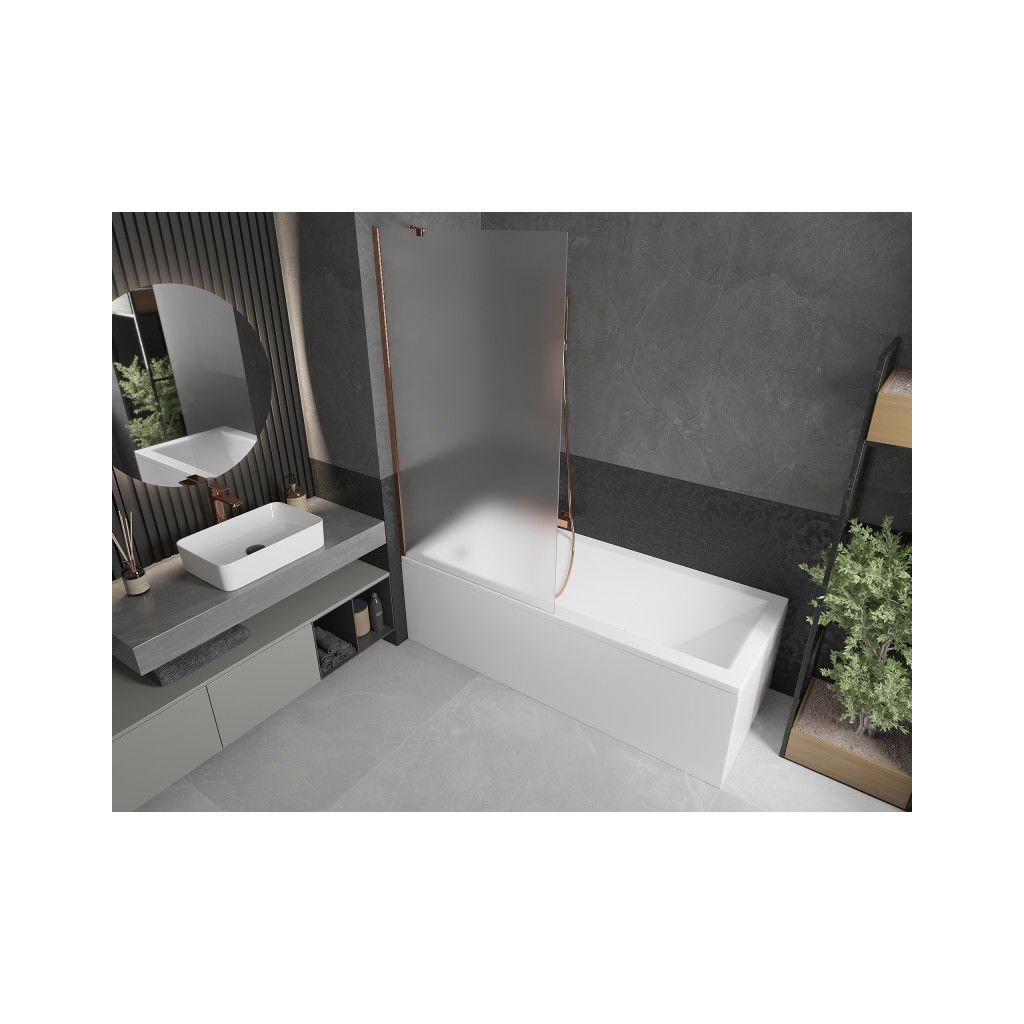 Mexen Next, vaňová zástena 1-krídlová 90 x 150 cm, fixné krídlo, 6 mm námraza sklo, ružové zlato profil, 895-090-000-00-30-60