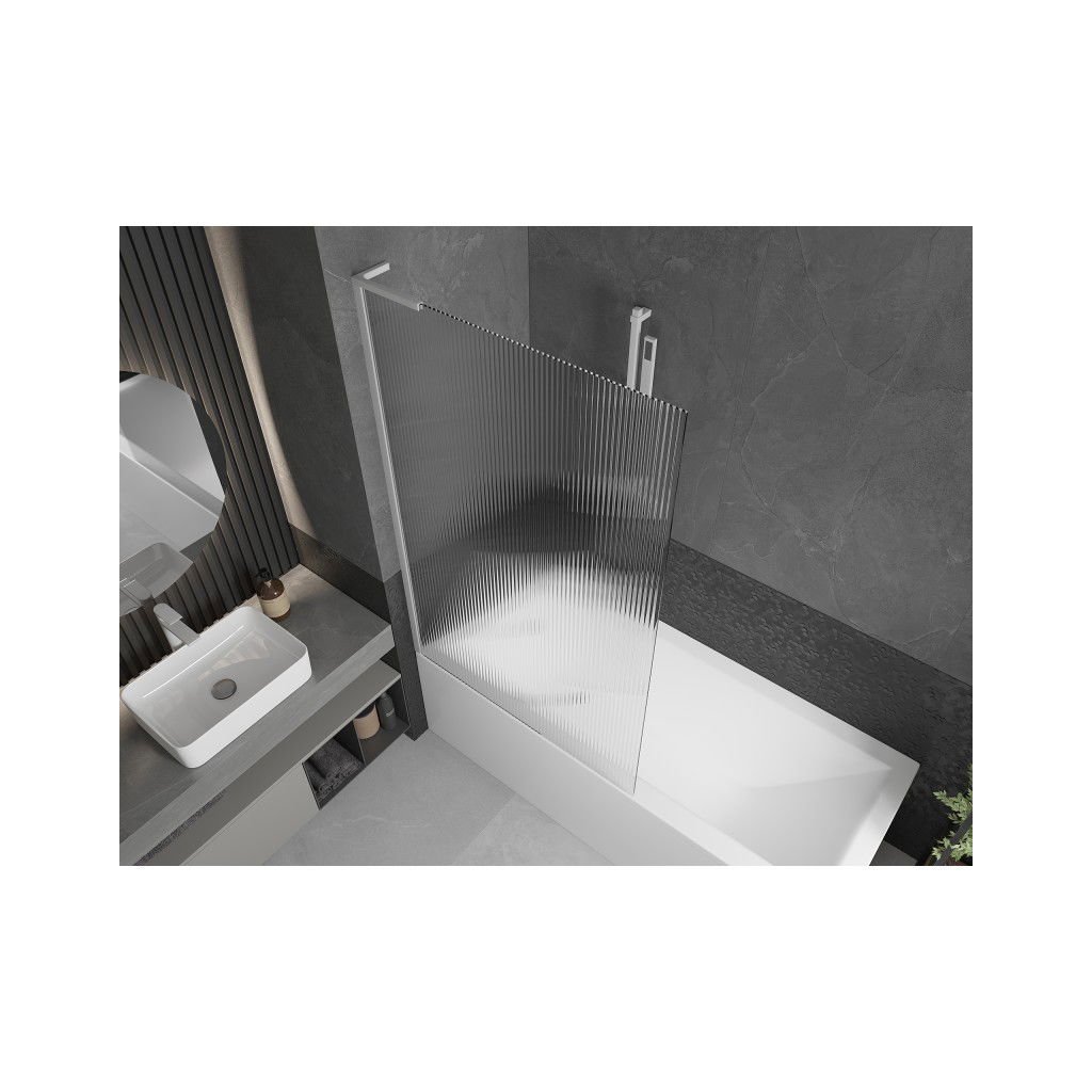Mexen Next L, 1-krídlová vaňová zástena 100 x 150 cm, 6mm sklo s rebrovým vzorom, biely profil, 895-100-000-03-09-20