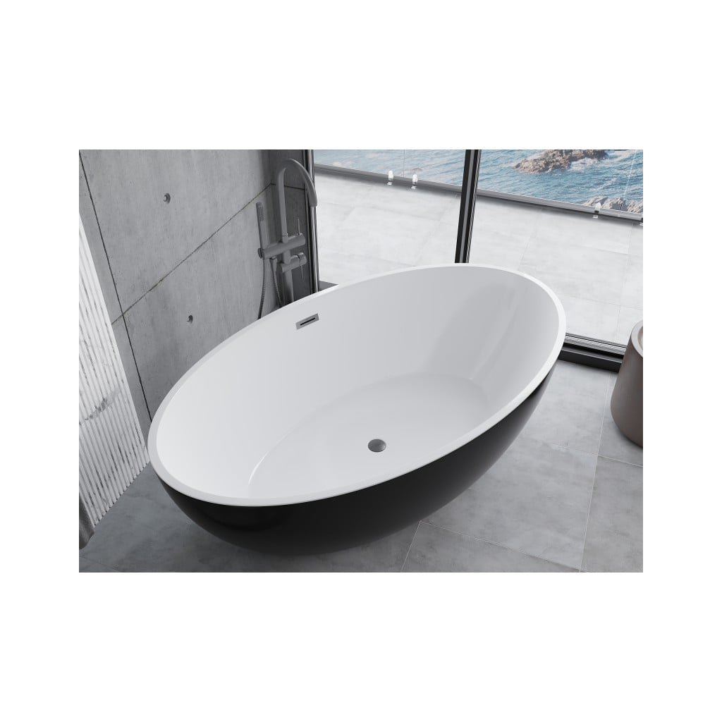 Mexen Nike, voľne stojaca vaňa 175 x 100 cm, biela-čierna, grafitový matný brúsený prepad, 54071751075-66