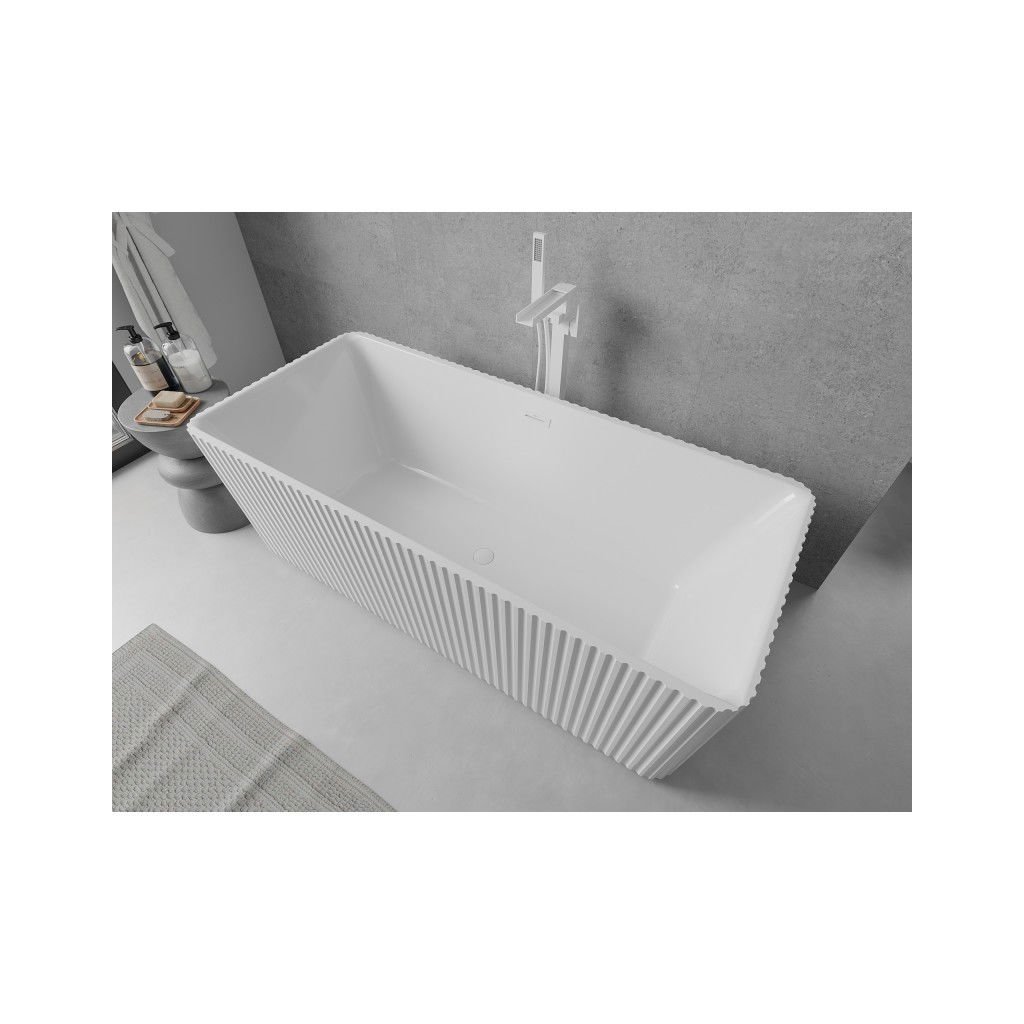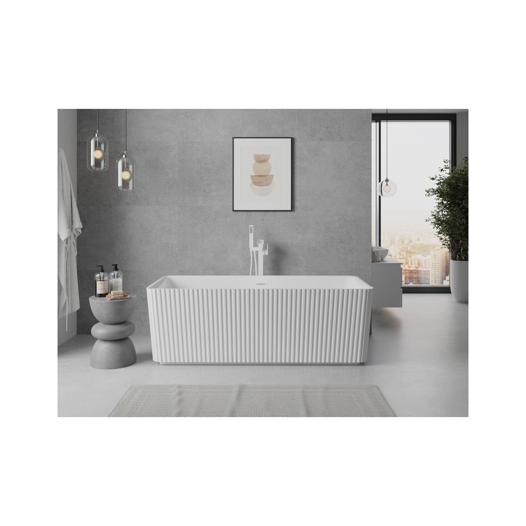 Mexen Nila, voľne stojaca ryhovaná vaňa 170 × 75 cm, biela lesklá, biely prepad, 52841708000-20