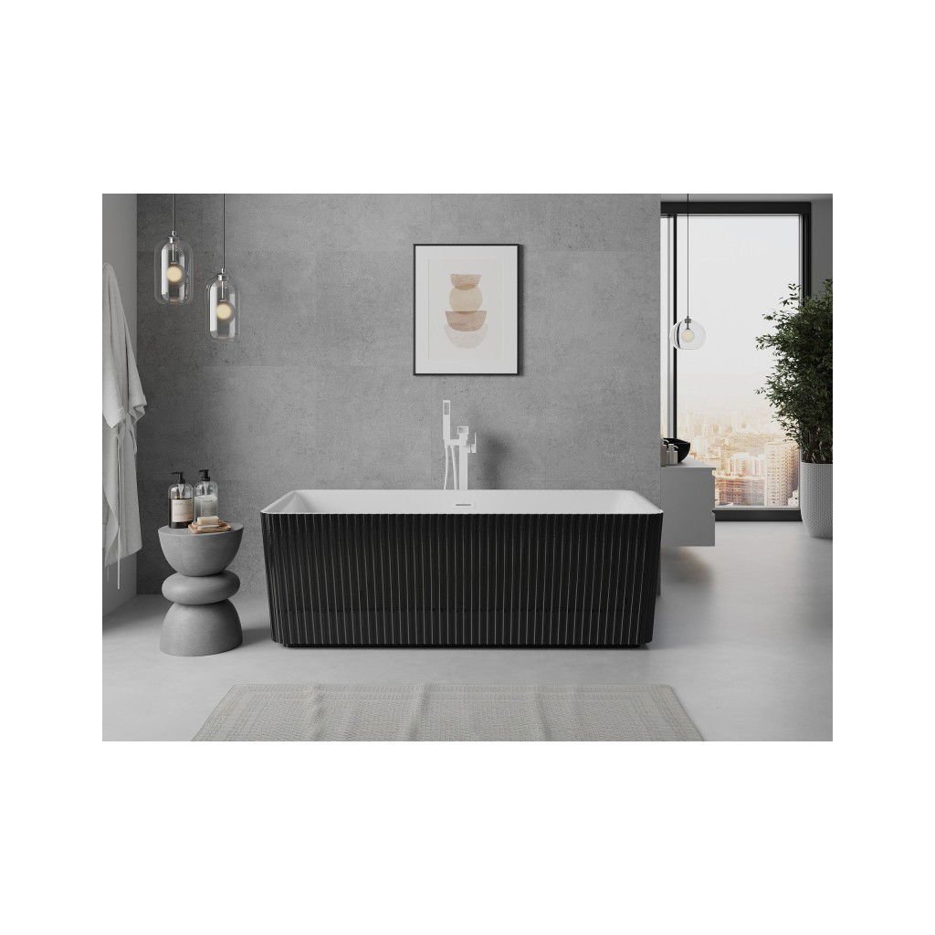 Mexen Nila, voľne stojaca ryhovaná vaňa 170 x 75 cm, biela-čierna, biely prepad, 52841708075-20