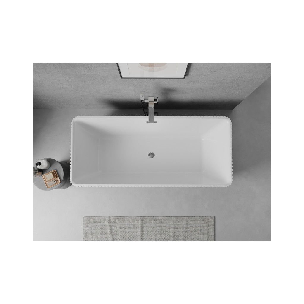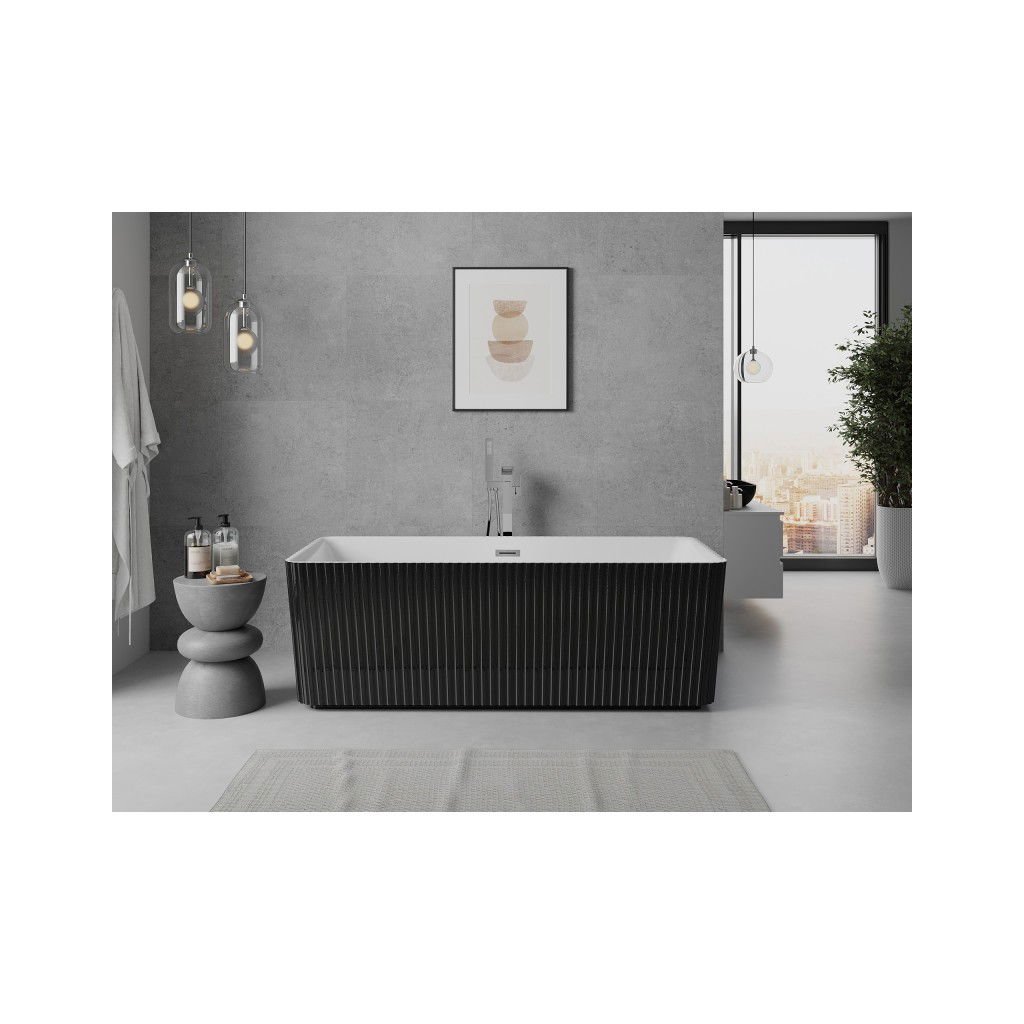 Mexen Nila, voľne stojaca ryhovaná vaňa 170 x 75 cm, biela-čierna, chrómový prepad, 52841708075-01