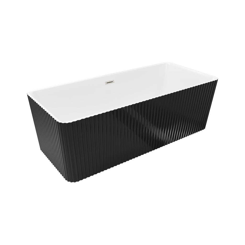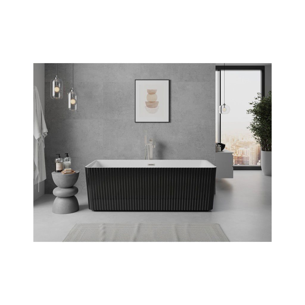 Mexen Nila, voľne stojaca ryhovaná vaňa 170 x 75 cm, biela-čierna, oceľový prepad, 52841708075-97