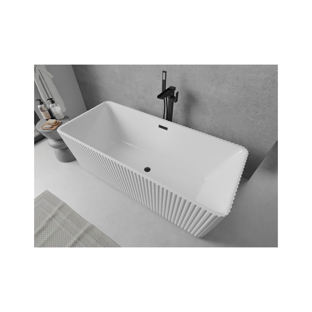 Mexen Nila, voľne stojaca ryhovaná vaňa 170 x 75 cm, biela lesklá, čierny matný prepad, 52841708000-70