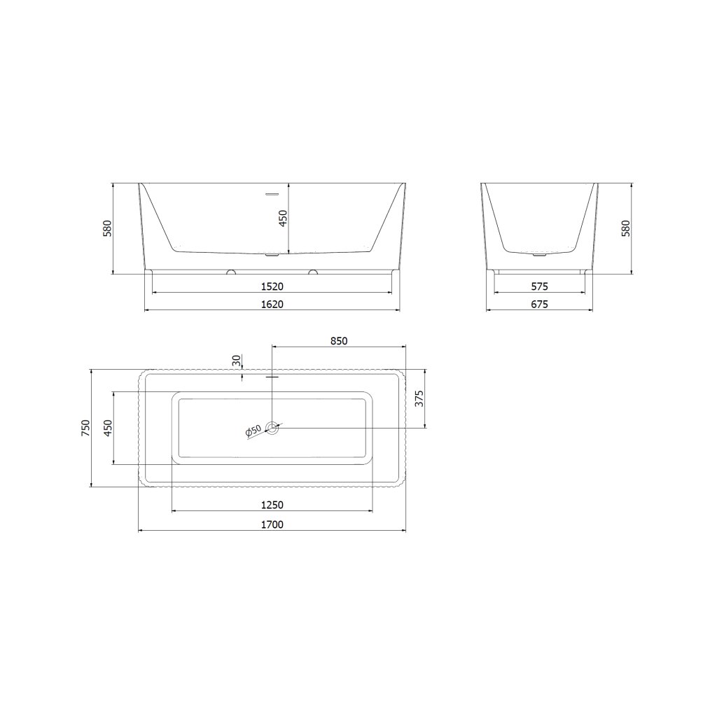 Mexen Nila, voľne stojaca ryhovaná vaňa 170 x 75 cm, biela lesklá, oceľový prepad, 52841708000-97