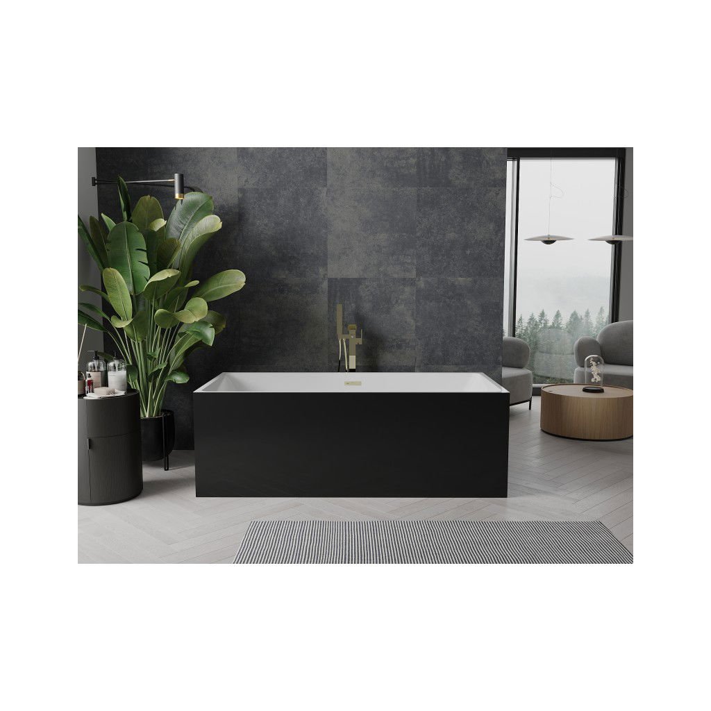 Mexen Nita, voľne stojaca vaňa 170 x 80 cm, biela-čierna, zlatý matný prepad, 52091708075-55