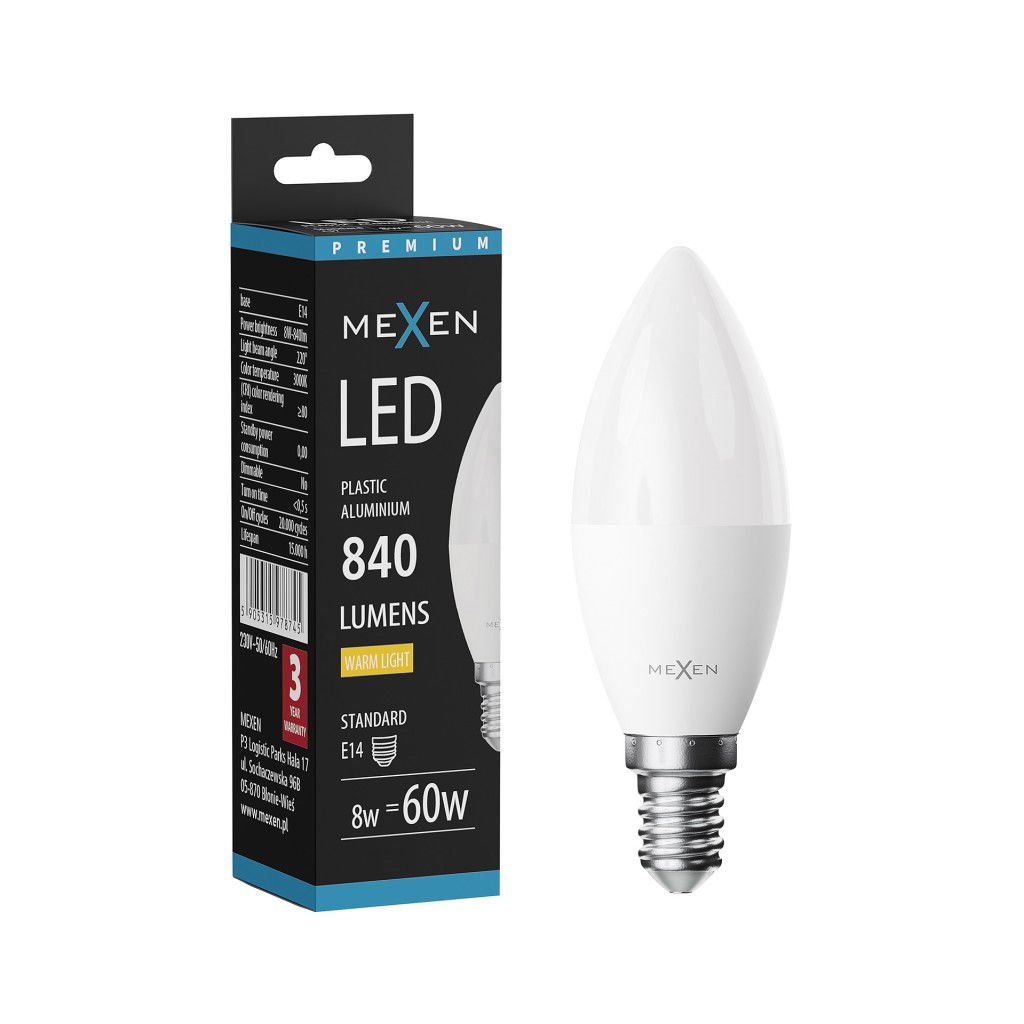 Mexen Nova, LED žiarovka E14, C37, 7W, teplá - 3000K, 735 lm - L102-E14-0730-01