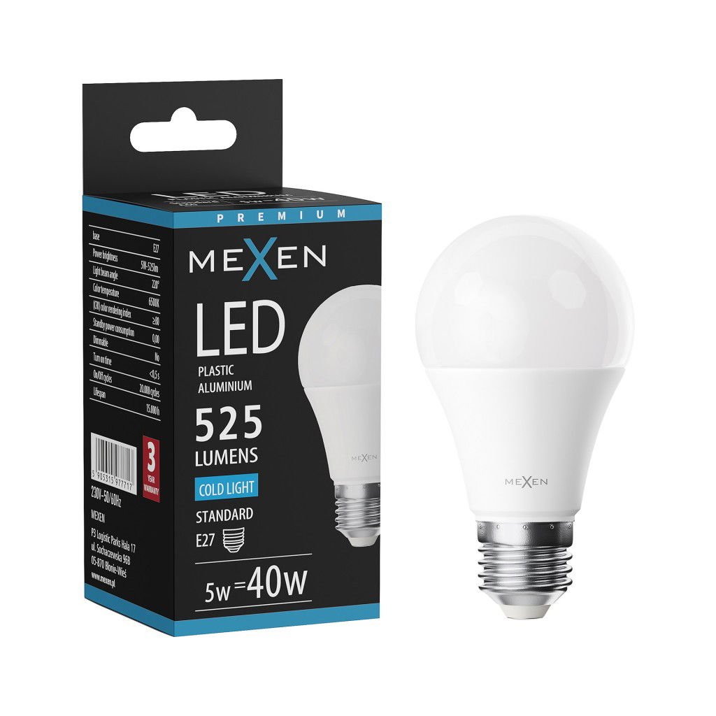 Mexen Nova, LED žiarovka E27, A60, 5W, studená - 6500K, 525 lm - L100-E27-0565-01