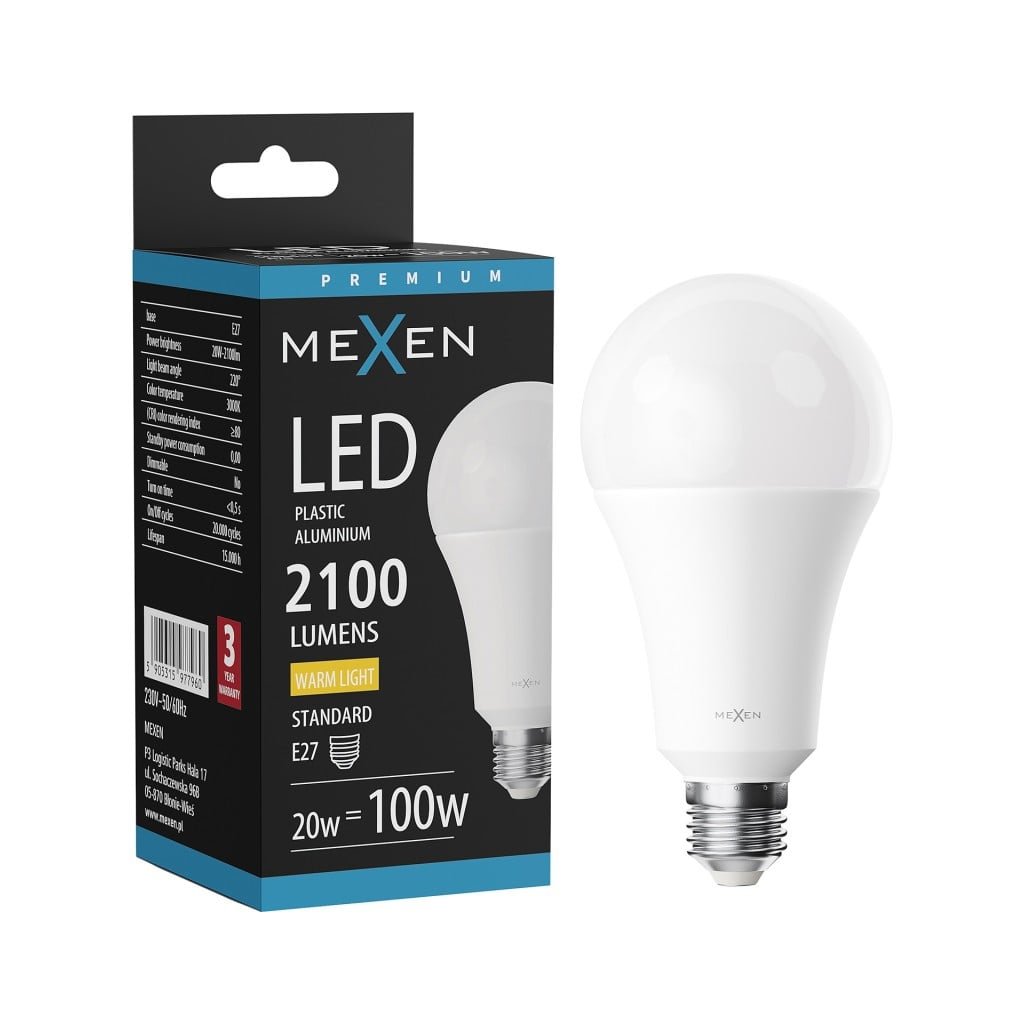 Mexen Nova, LED žiarovka E27, A70, 20W, teplá - 3000K, 2100 lm - L100-E27-2030-01