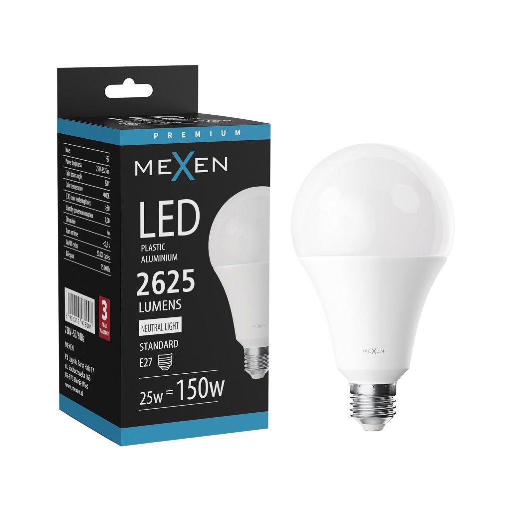 Mexen Nova, LED žiarovka E27, A95, 25W, teplá - 3000K, 2625 lm - L100-E27-2530-01