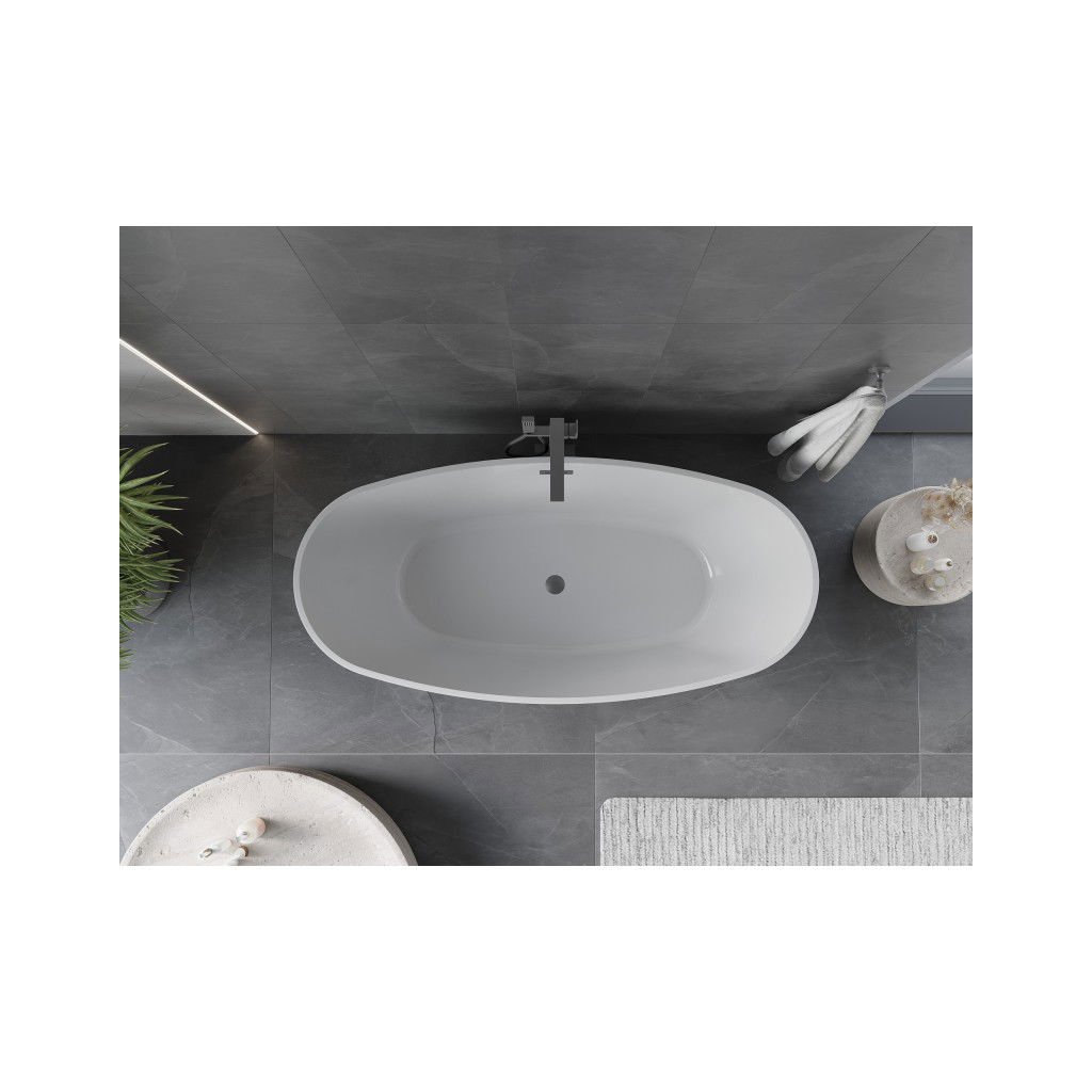 Mexen Olea, voľne stojaca vaňa, vzor, 170 × 80 cm, biela-čierna, grafitový prepad, 52821708075-95