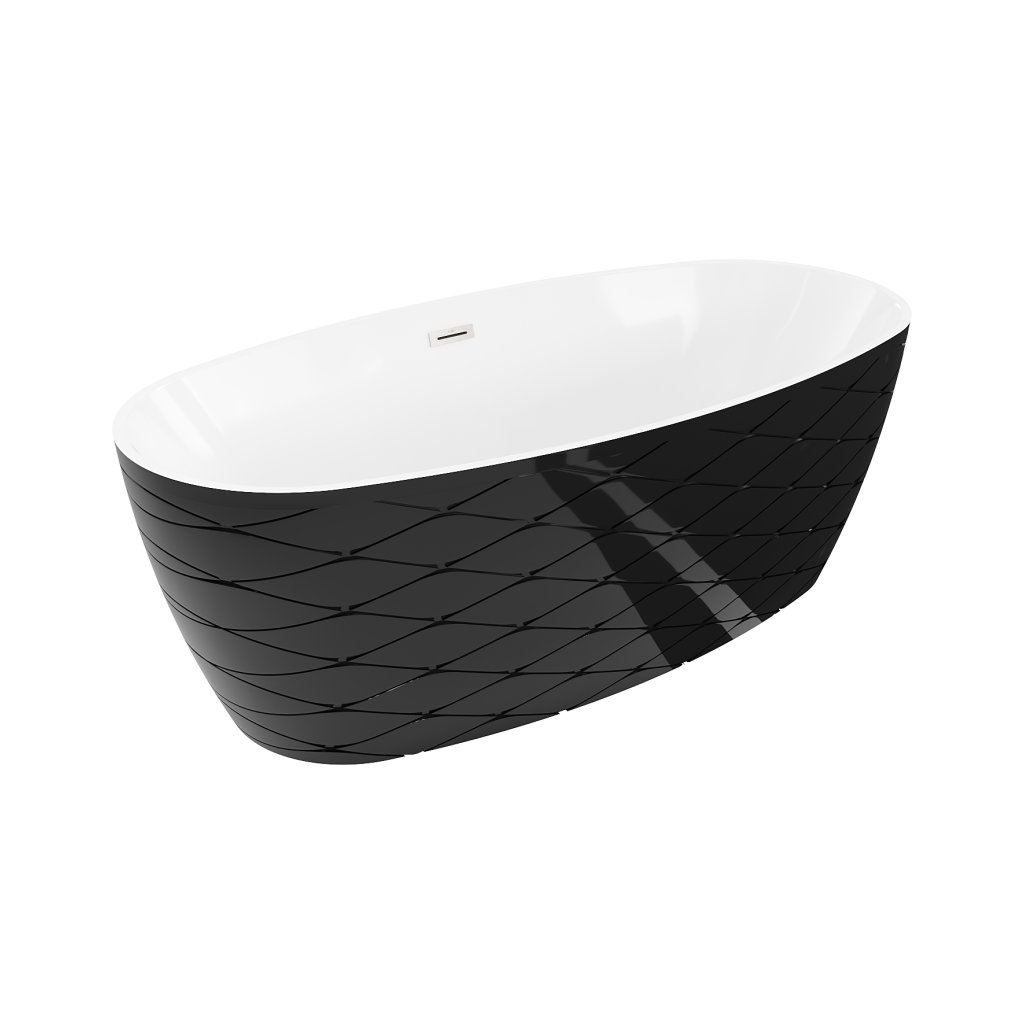 Mexen Olea, voľne stojaca vaňa, vzor, 170 × 80 cm, biela-čierna, oceľový prepad, 52821708075-97