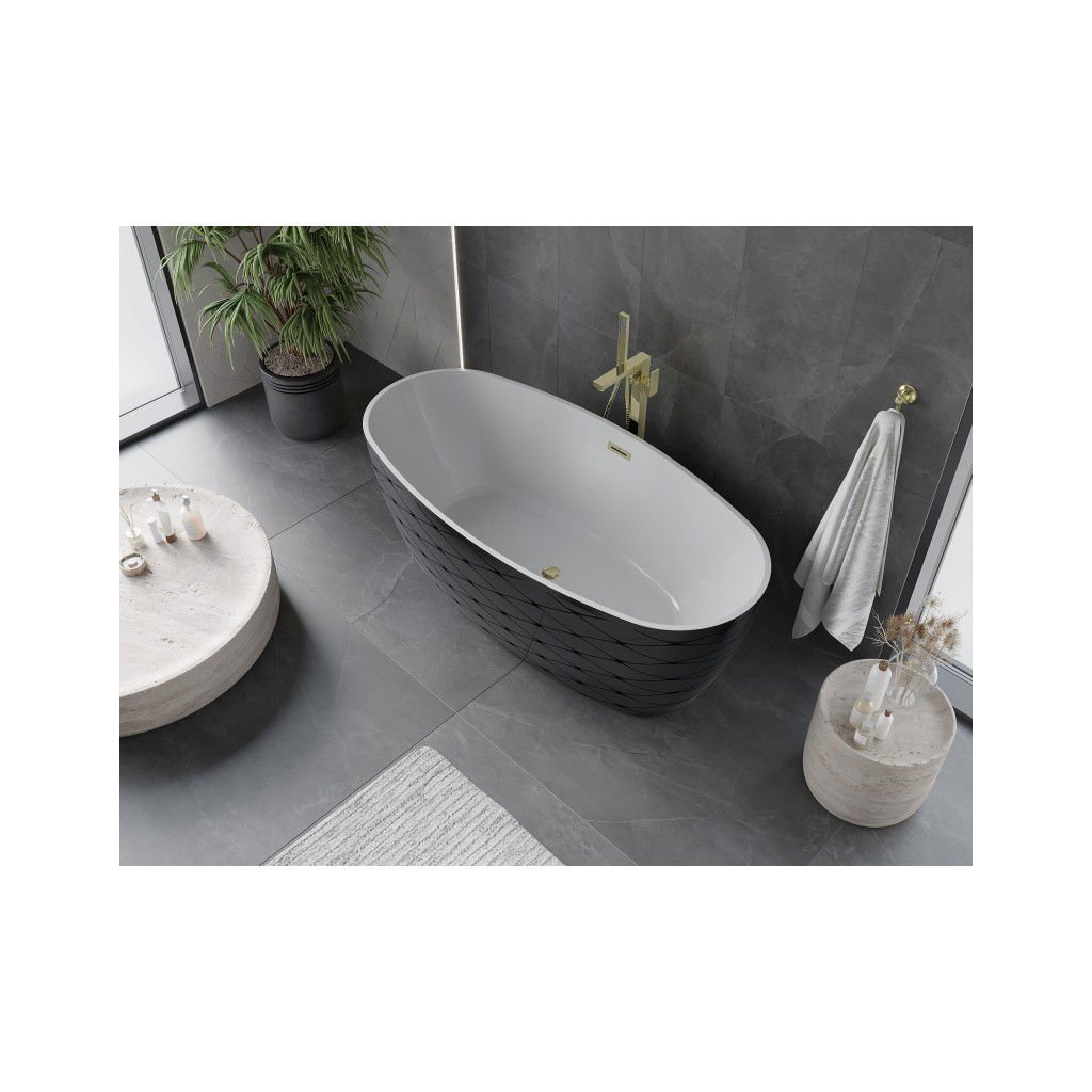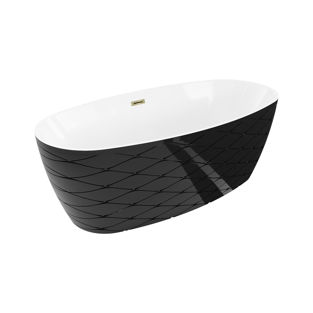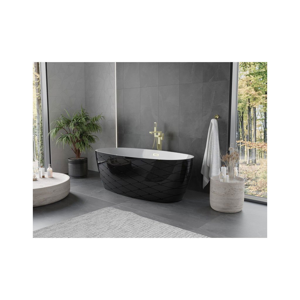 Mexen Olea, voľne stojaca vaňa, vzor, 170 × 80 cm, biela-čierna, zlatý lesklý prepad, 52821708075-50